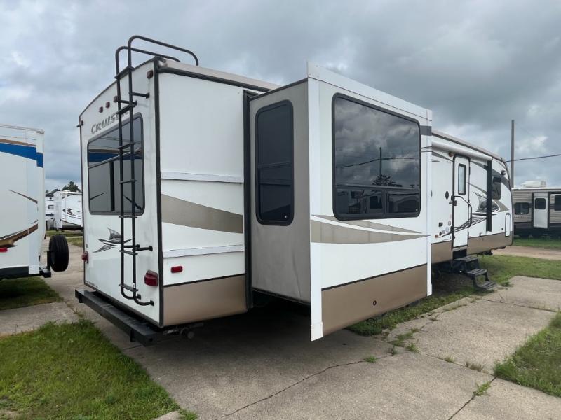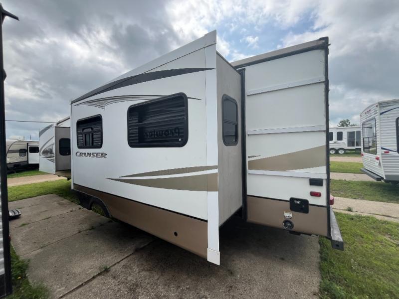 Triple Slide Cruiser Travel Trailer, Rear Entertainment Center, Sofa/Booth Dinette Slide, Refrigerator, Shower, Toilet, Lav., Med. Cab., Queen Bed Slide, Wardrobe w/Sliding Doors, Shelf, Chest of Drawers, TV, Linen, Coat Closet, Pantry, Microwave, 3-Burner Range, Dbl. Kitchen Sink, 2-Swivel Rockers Slide, Overhead Cabinets Throughout & Much More.