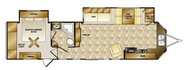 Double Slide Hampton Destination Travel Trailer, Rear Bedroom w/Queen Bed Slide, Walk-In Closet, Armoire, Ceiling Fan, Linen, Lav., Shower, Toilet, Fireplace, Sofa/Free-Standing Dinette/Pull-Out Pantry Slide, Dbl. Kitchen Sink, Range, Microwave, Refrigerator, Lounge Chair, Overhead Cabinets Throughout & Much More.