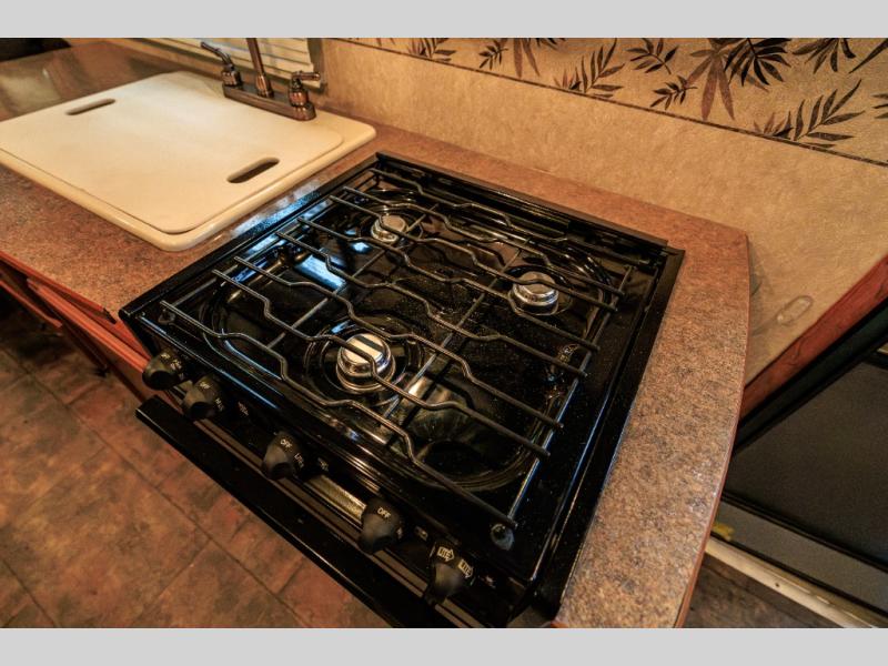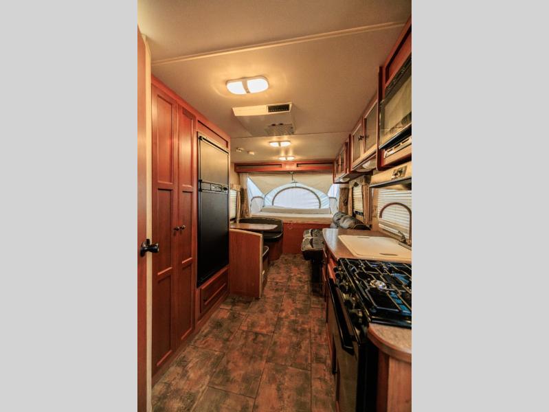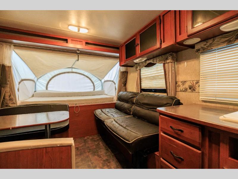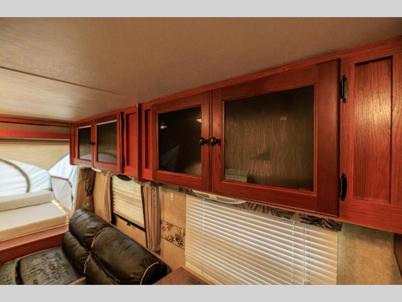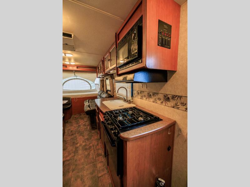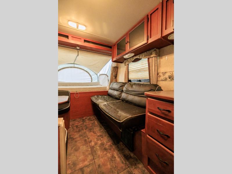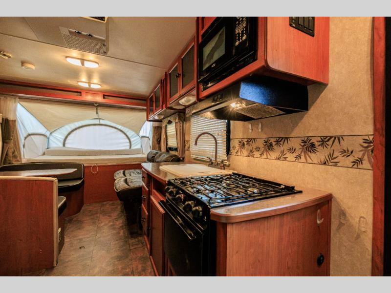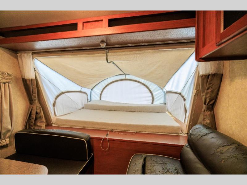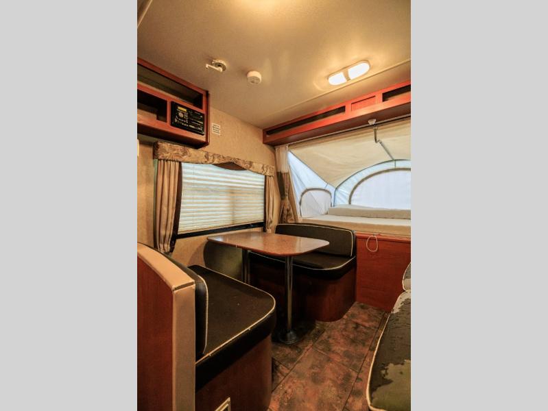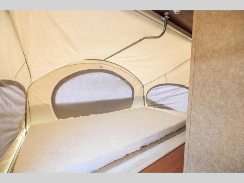 Aerolite Shuttle Series Expandable by Dutchmen w/Front & Rear Queen Tent End Beds, Front Storage Shelf, Rear Overhead Cabinet, Corner Bath w/Neo-Angle Shower w/Skylight, Wardrobe/Pantry, Refrigerator, Booth Dinette w/Radio & Overhead Above, Sofa Bed w/Overhead Storage, Dbl. Kitchen Sink, 3 Burner Range w/Microwave and More!