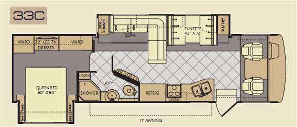 Double Slide Bounder Motor Home Class A, Rear Queen Bed/Nightstands Slide, Wardrobe, Dresser, 32" LCD TV, Wardrobe, Sofa Cabinet/L-Sofa/Dinette/Pantry Slide, Double Kitchen Sink, 3-Burner Range, Microwave, Refrigerator, 40" LCD TV, Toilet, Lav., Shower, Linen, Overhead Cabinets Throughout, 17' Awning & Much More. Available Options May Include: King Bed, Facing Dinette, Fireplace, Washer/Dryer, 3-Burner Range w/Oven, Exterior Entertainment Center, Front 32" LCD TV.