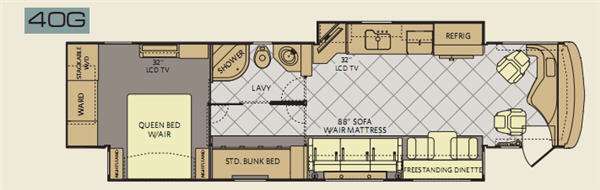 Double Slide Discovery Class A, Rear Ward., Stackable Washer/Dryer, Wall Slide w/Queen Bed/Nightstands/Bunk Beds/Sofa w/Air Mattress/Free-Standing Dinette, Bath w/Shower, Toilet, Lav., Slideout 32" LCD TV/Dbl. Kit. Sink/3 Burner Range/Refrig. & Much More. Available Options May Include: Front 32" LCD TV, Residential Refrigerator, U-Shaped Dinette/Sofa, Facing Dinette, Queen Bed w/Memory Foam, King Bed w/Memory Foam, King Bed w/Air Mattress, Desk.