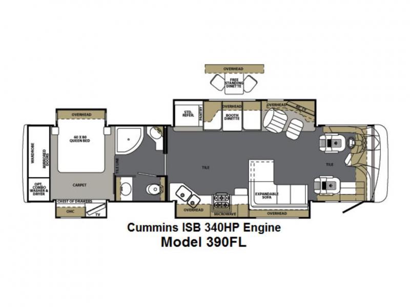 Quad Slide Berkshire Motor Home, Rear Bedroom w/Queen Bed Slide, Wardrobe w/Mirrored Doors, Chest of Drawers/TV Slide, Private Toilet Area w/Lav., Dbl. Kitchen Sink/3-Burner Range/Microwave/Expandable Sofa Slide, Lounge Chair/40" TV/Booth Dinette/Pantry/Refrigerator Slide, Lav., Shower, Overhead Cabinets Throughout & Much More. Available Options May Include: Washer/Dryer, Free-Standing Table & Chairs. Cummins ISB-XT 360HP Engine Available.