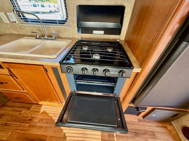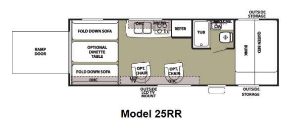 Cherokee Grey Wolf Toy Hauler Travel Trailer, Rear Ramp Door, Dbl. Fold Down Sofas, Dbl. Kitchen Sink, 3-Burner Range, Microwave, Refrigerator, Tub, Lav., Med. Cab., Toilet, Queen Bed, Bunk Above, Overhead Cabinets Throughout, Outside Storage, Outside LCD TV Mount & Much More. Available Options May Include: Dinette Table, 2-Lounge Chairs.