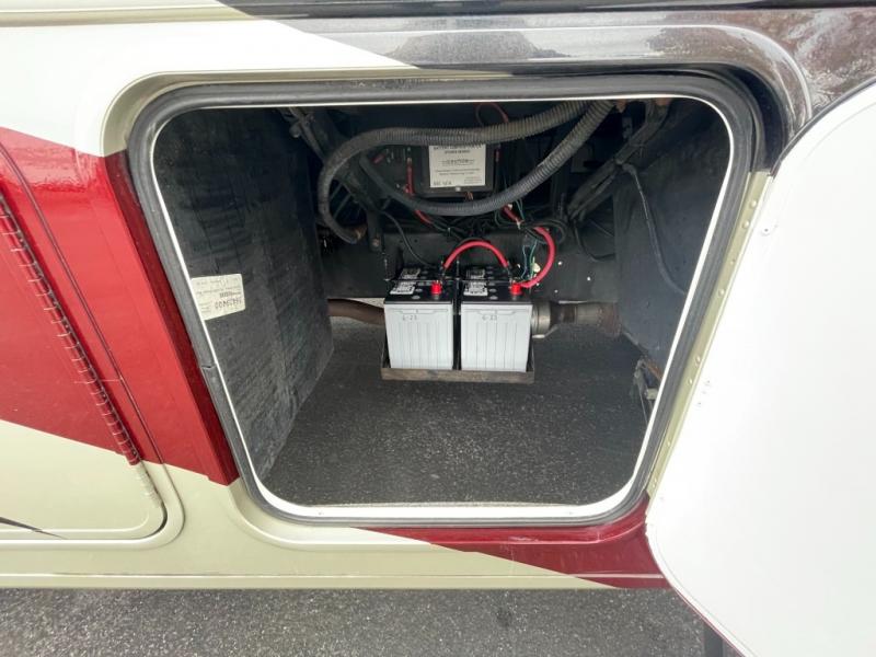 Double Slide Georgetown Motor Home Class A, Rear Queen Bed Slideout, Double Wardrobe, Booth Dinette/Sofa Slideout, Shower, Toilet, Lav., Med. Cab., Double Kitchen Sink, 3-Burner Range, Microwave, Refrigerator, TV, Overhead Cabinets Throughout & Much More. Available Options May Include: TV in Bedroom.