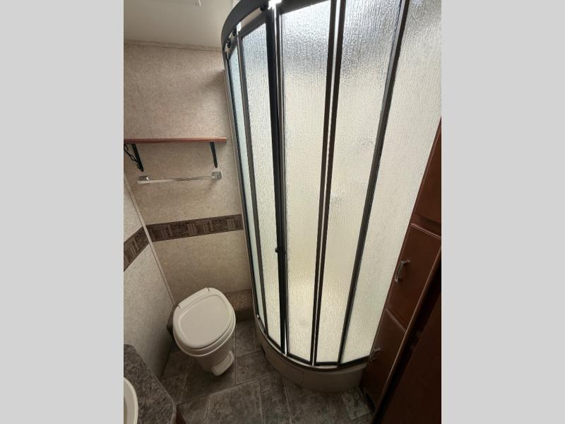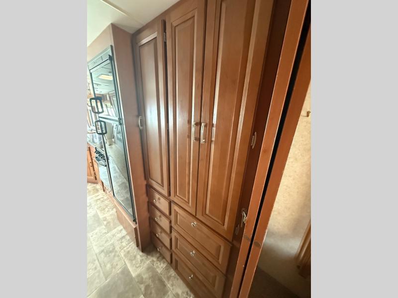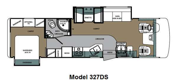 Double Slide Georgetown Motor Home Class A, Rear Queen Bed Slide, Double Wardrobes, Lav., Toilet, Shower, Dinette/Hide-A-Bed Sofa Slide, Wardrobe, Pantry, Refrigerator, 3-Burner Range, Microwave, Double Kitchen Sink, Lounger, Table, Overhead Cabinets Throughout & Much More. Available Options May Include: TV in Bedroom.