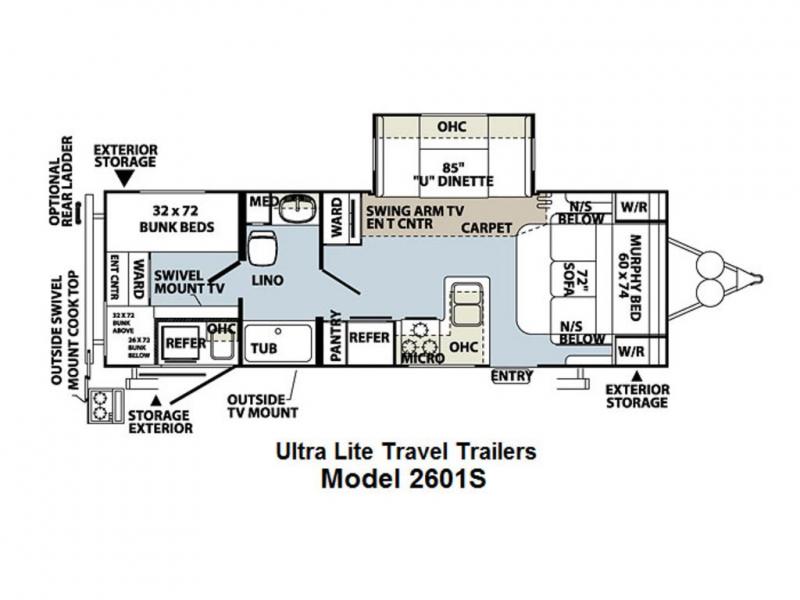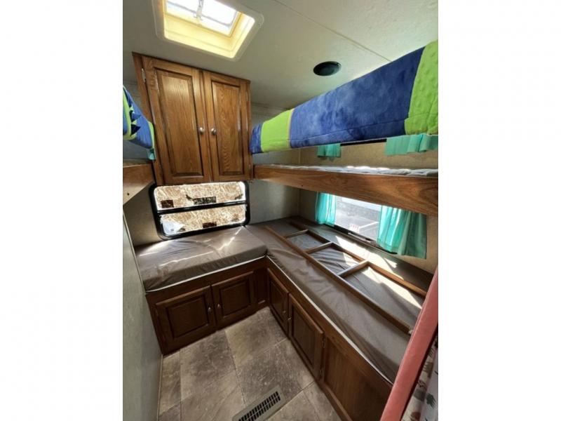 Single Slide Rockwood Ultra Lite Travel Trailer, Quad Bunk Beds, Ward., Ent. Center, Swivel Mount TV, Tub, Pantry, Refrigerator, 3-Burner Range, Micro., Dbl. Kitchen Sink, Murphy Bed, Sofa, Dbl. Wardrobe w/Nightstand Below, "U" Dinette Slide, Swing Arm TV Ent. Center, Ward., Lav., Med. Cab., Toilet, Overhead Cabinets Throughout, Ext. Storage, Outside TV Mount, Outside Swivel Mount Cook Top & Much More. Available Options May Include: Rear Ladder.