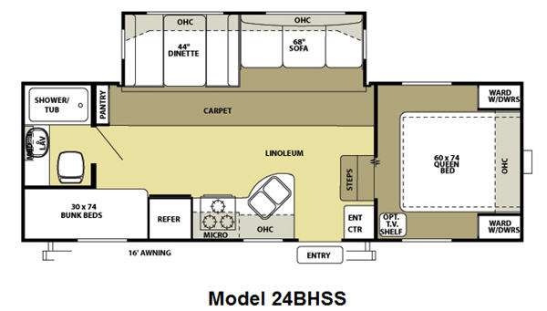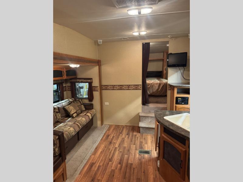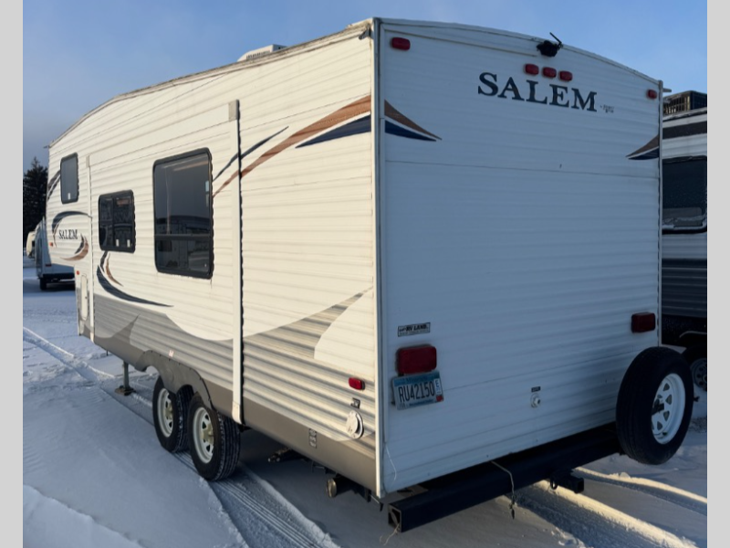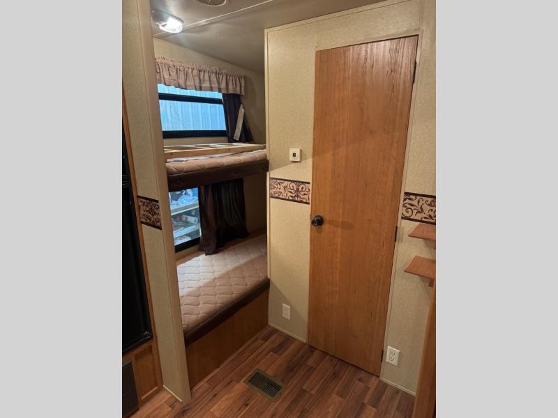 Single Slide Salem Fifth Wheel, Rear Bathroom w/Shower/Tub, Sink, Med. Cab., Toilet, Bunk Beds, Pantry, Slideout Booth Dinette & Sofa w/Overhead Cab., Refrigerator, 3 Burner Range, Micro., Double Kitchen Sink, Overhead Cab., Ent Center, Front Queen Bed, Dbl. Wardrobes w/Drawers, 16' Awning and More.