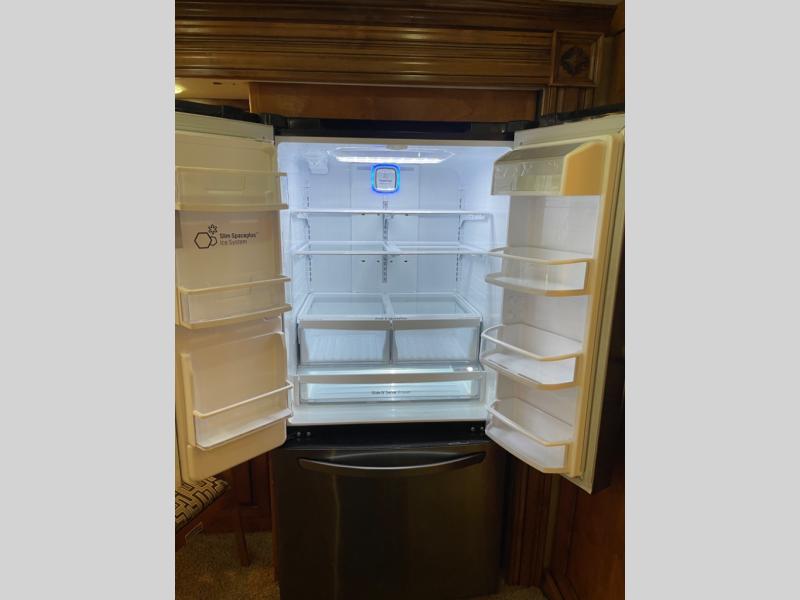 - Full-size residential refrigerator with ice maker keeps food fresh for extended trips.