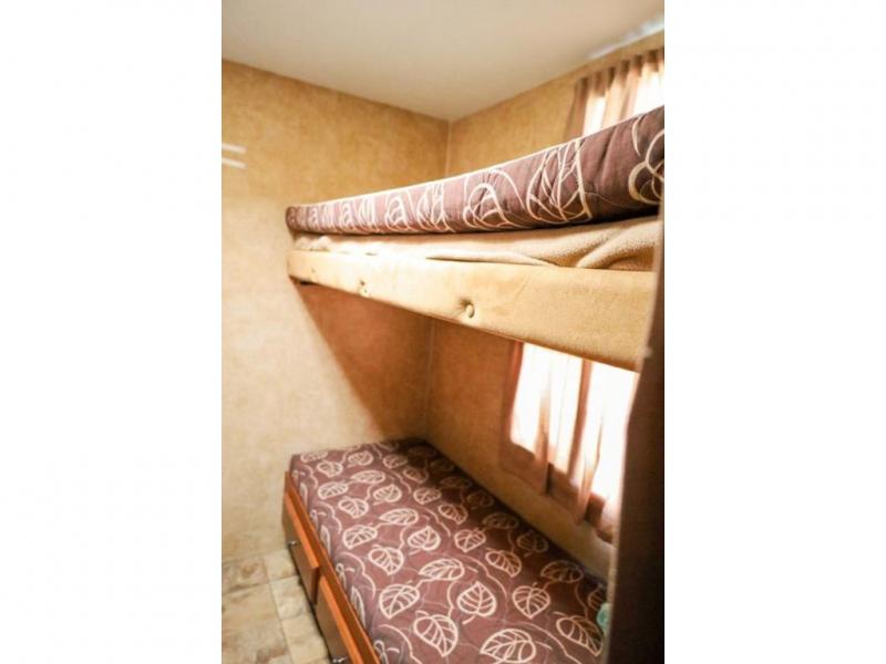 What I liked most: Outside Kitchen, bunks in back, queen in front. Light enough to tow with a 3/4 ton Suburban.