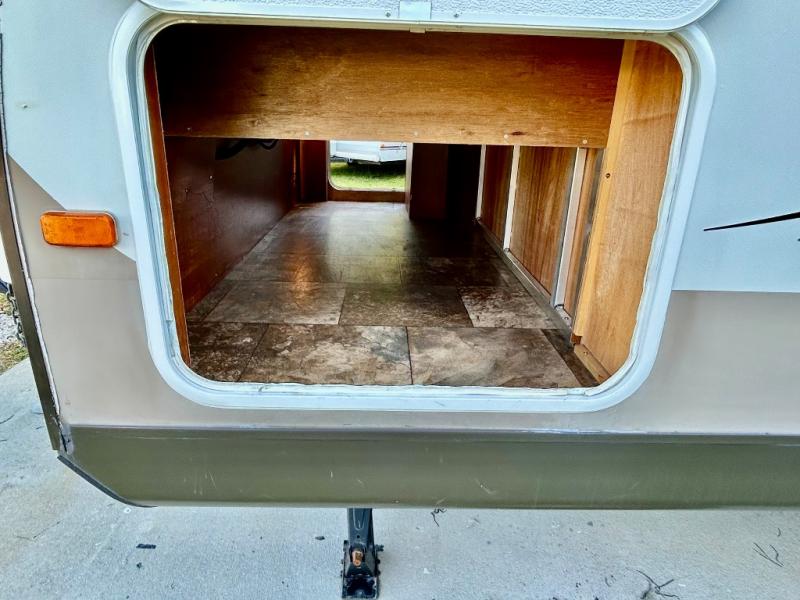 Single Slide White Hawk Travel Trailer, Rear Double Bed Bunk Beds, Tub/Shower, Toilet, Lav., Med Cab., Pantry/Ward., Refrigerator, Microwave, 3-Burner Range, Dbl. Kitchen Sink, Entertainment Center, Queen Bed, Dbl. Wardrobes, Sofa/Dinette Slide, Pantry, Overhead Cabinets Throughout & Much More. Available Options May Include: Free-Standing Table & Chairs, Hide-a-Bed.
