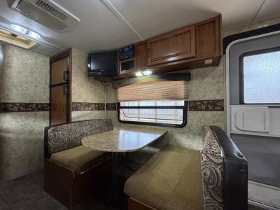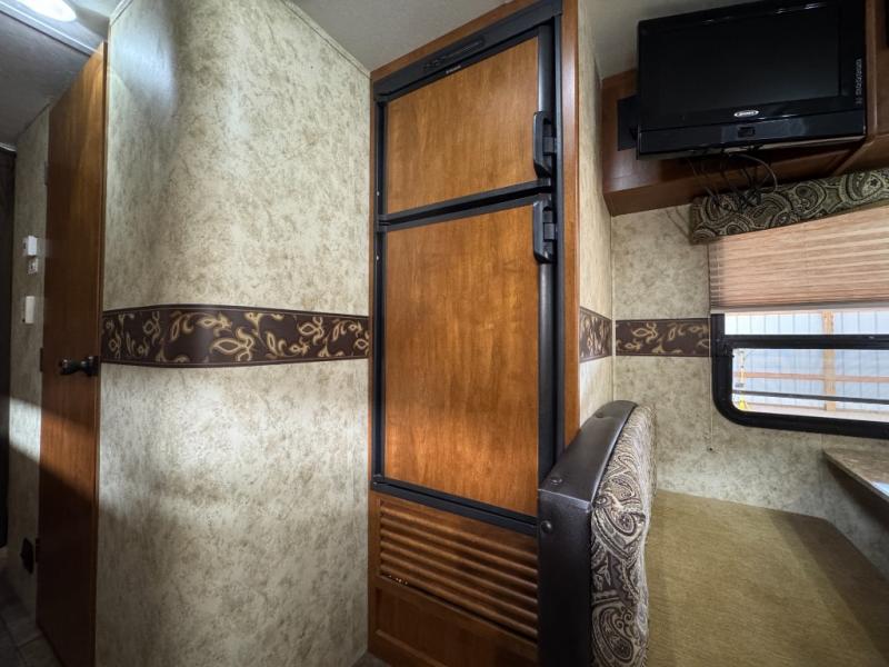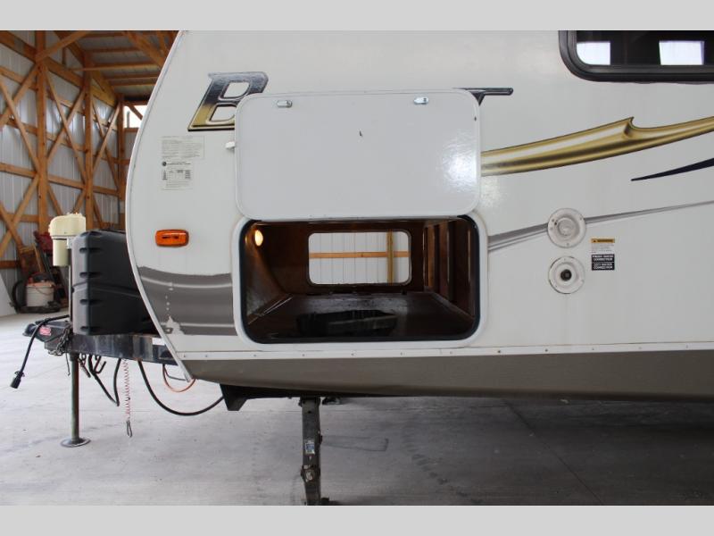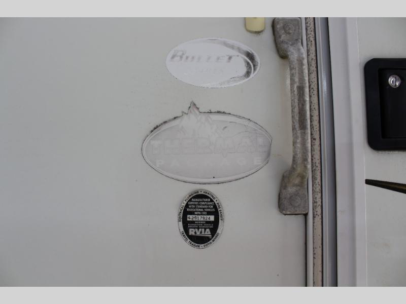 Bullet Travel Trailer w/Rear Living Area Including: 2 Swivel Rockers w/End Table & Overhead Storage, Air Bed Sofa/Kitchen Sink/Trash Can Storage & 3 Burner Range w/Overhead Cabinet Slideout, Pantry, Booth Dinette w/Overhead Cabinet & LCD TV, Refrigerator, Side Aisle Bath w/Linen Cabinet, Angle Shower, Toilet & Sink, Dresser w/Drawers, Front Queen Bed w/Private Bedroom Entry, Wardrobes Both Sides of Bed, Front Pass-Thru Storage, Laundry Chute and Much More!