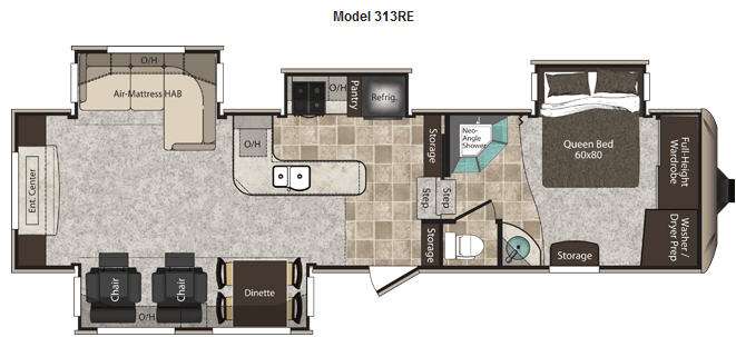Keystone Montana High Country Fifth Wheel w/Rear Entertainment Including Full End Wall Ent. Center, 2 Lounge Chairs & Dinette Slideout, Air Mattress HAB Slide w/Overhead Cabinet, L-Shaped Counter w/Dbl. Kitchen Sink, 3 Burner Range/Pantry/Refrigerator, Storage Cabinets, Step up to Bed & Bath w/Private Toilet Area, Sink, Neo-Angle Shower, Front Queen Bed Slide, Full-Height Wardrobe w/Sliding Doors, Washer/Dryer Prep, Storage Cabinet & Much More!