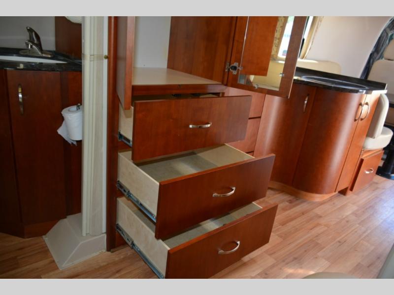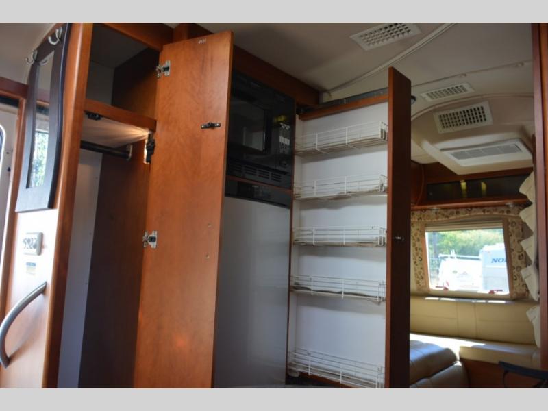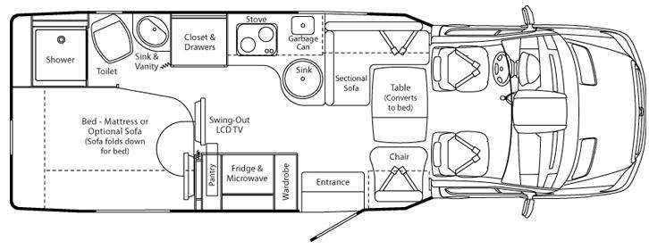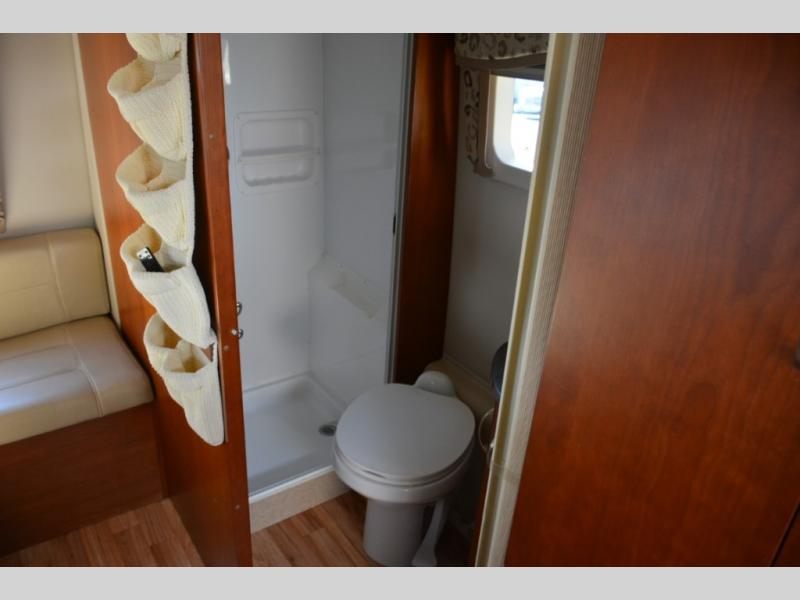 Serenity Class B Coach w/Rear Corner Bed, Rear Corner Shower, Toilet & Vanity w/Sink, Closet & Drawers, 2 Burner Stove Top, Garbage Can, Round Kitchen Sink, Overhead Storage, Pantry, Swing-Out LCD TV, Refrigerator w/Microwave Above, L-Sectional w/Table (Converts to Bed), Lounge Chair Behind Passenger Seat and Much More! Available Options May Include: Power Tri-Fold Sofa in Rear Folds Down for Bed. This unit is on a 2011 Chassis