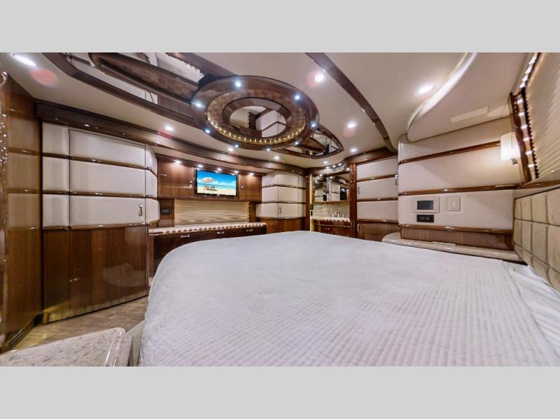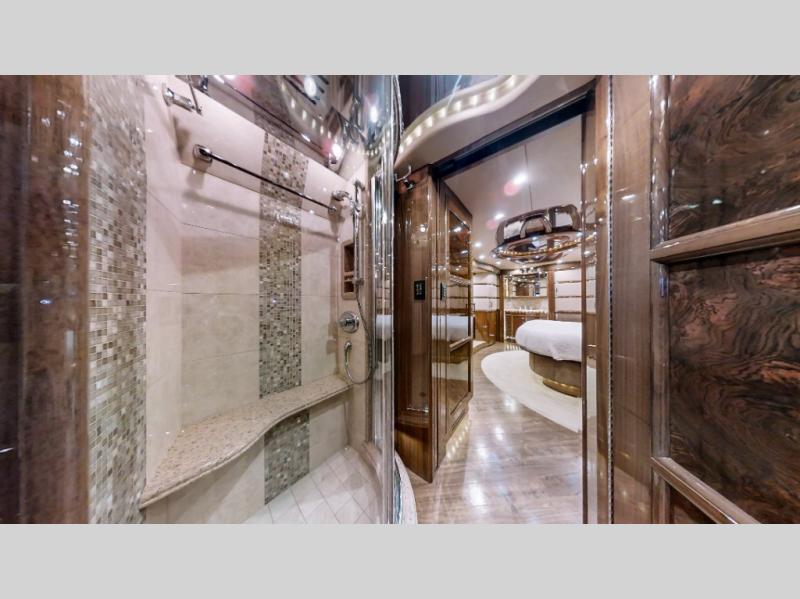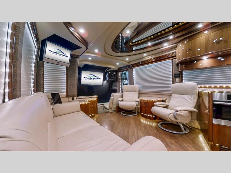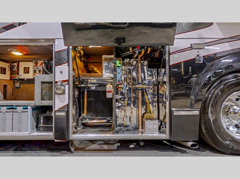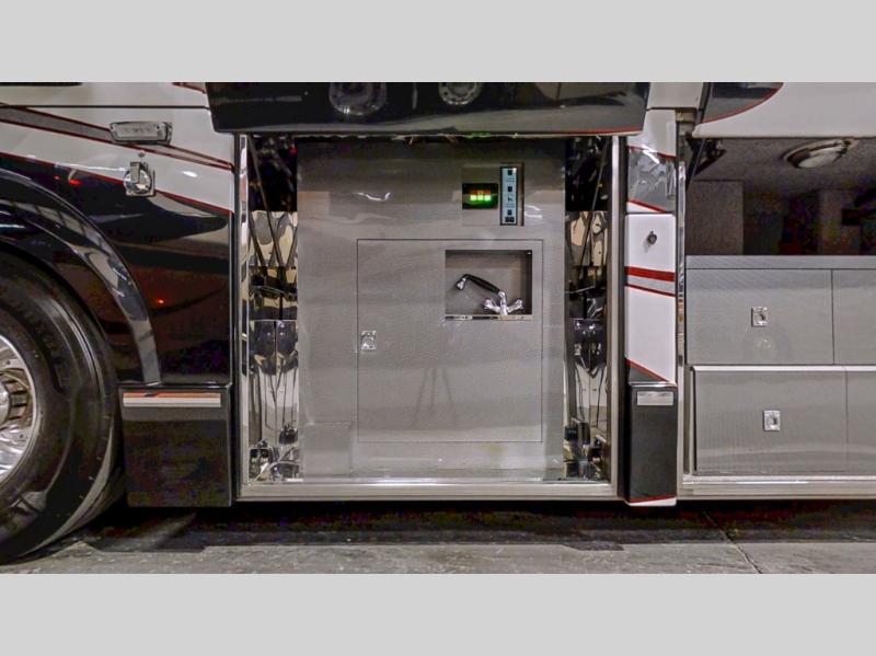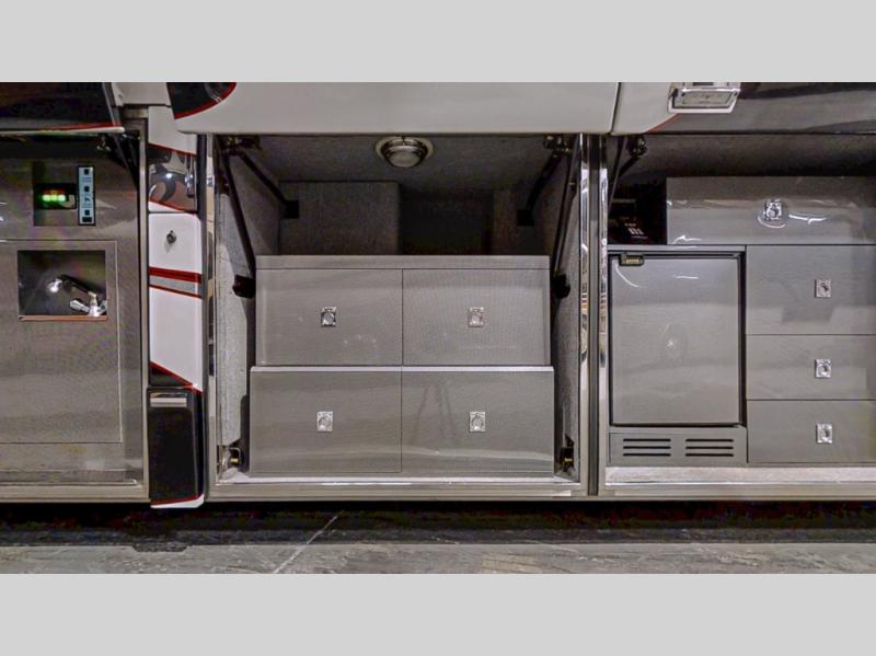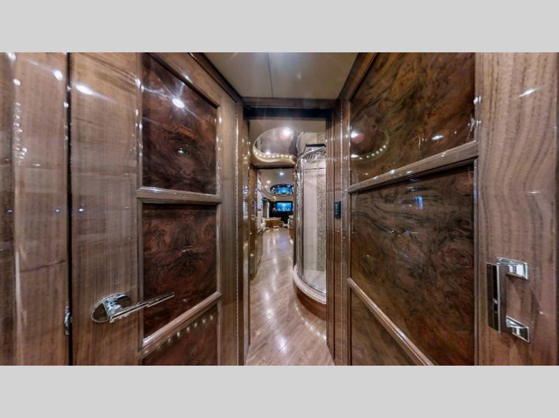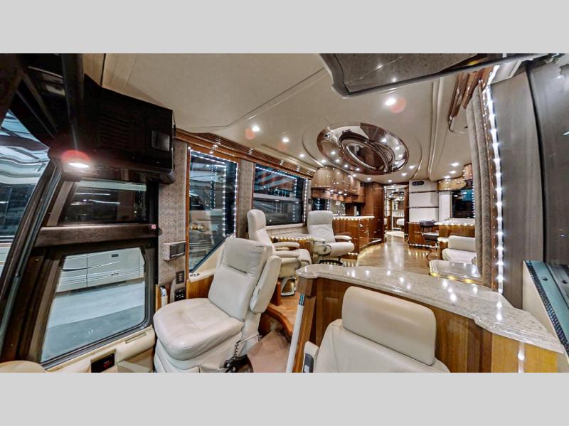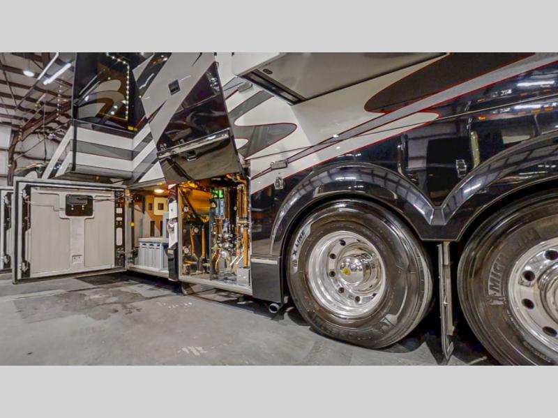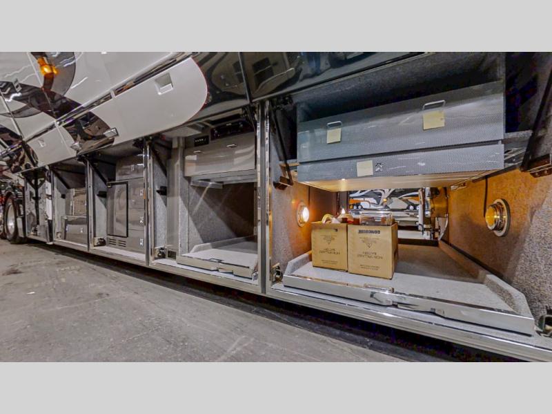 • Alcoa aluminum rims • Cruise control • Allison hydraulic transmission retarder • All disc brakes w/ ABS & electronic stability program • Independent suspension system • Front & drive axle sway bars • Integrated pneumatic level-low leveling system • Liftable tag axle • Fully multiplex electrical system • 12-volt exterior lighting • 24-volt main system • Millennium installed house alternator • High intensity headlights • Fog lights • Ramco remote chrome heated rearview mirrors • Central electrical door locking system • Remote keyless locking (entrance door) • Remote keyless locking (compartment doors) • Trailer hitch package (20,000 lb.) • Back up sound alarm • Xenon headlamps • Lightweight granite countertops • Air operated pocket doors • Marine grade electrical wire • Octaplex control system • Ipad touch screen controllers linked to Octaplex operating system • Full time internet Open Road Mo wi-fi network connection • Ceiling accent rope lighting throughout using LED technology • Multi-zone heating system • Interior & exterior LED lighting • Motorized Hunter Douglas cell shades • Front & rear custom spoilers • Bose surround sound • Aiphone intercom w/ built-in monitor to view entry door w/ zoom & pan feature • Master lighting switch on the rear nightstand & front • Electric blackout shades • Automatic interior LED cabinet lights • Central vacuum • In-motion Tracstar satellite dish with two receivers • HD Winegard dish • Four full length roof mounted awnings w/ wind sensors slideout / window / patio • Six LED curb lights • Four high powered air horns in nose for wind noise reduction • Liberty one-touch leveling system • Chrome plated heated side mirrors • Li Ion house batteries • Four Outback inverters Three Mastervolt LiIon batts (2020)• Glendenning electric reel for shoreline cord • Cruise Air A/C units • Generator auto-start feature • Smart Wheel • Pneumatic tilt & telescope steering wheel • Air Ride cooled, heated & massaging driver’s seat • 28” wide co-pilot seat w/ recline, footrest, electric six way power base, massage, heating, map storage & drink holder • Electric privacy shades • Pioneer AM/FM/DVD/GPS/MP3 • Mapping system • Adjustable monitor at passenger seat • Color LCD back-up monitor • CB radio • Slide step well cover • Concealed drop-down flatscreen TV at front of coach • LVT flooring in salon • Jack Knife sofa • Euro recliner Breakfast with bar stools • Flatscreen TV on concealed electric lift at galley bar • Stainless sink • Built-in coffee pot • Two burner cooktop • Microwave/convection oven • Drawer dishwasher • Half bath w/ vanity/sink & toilet in private water closet • LVT flooring in hallway leading to stateroom • Stack washer/dryer • King Bed