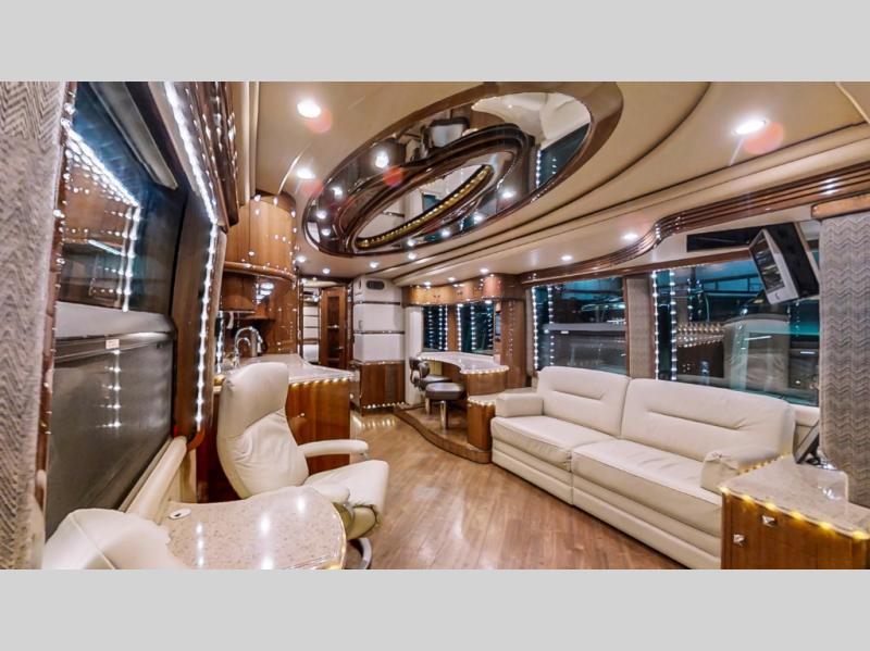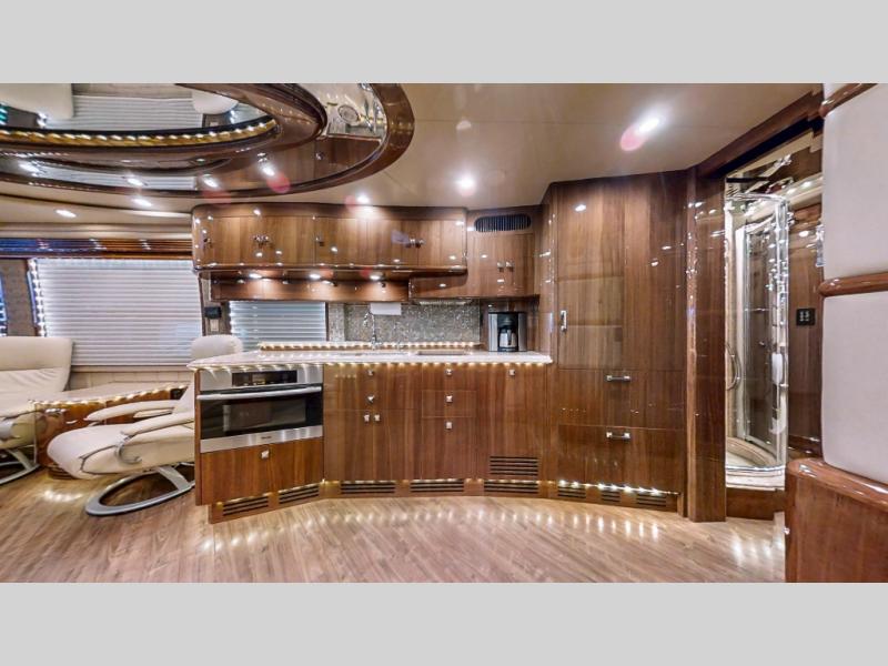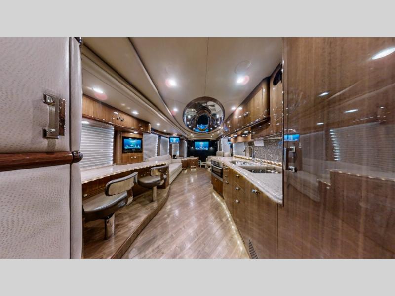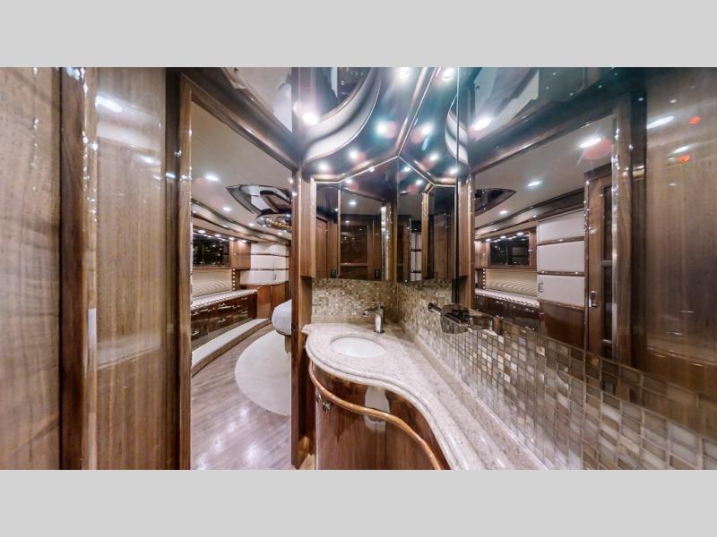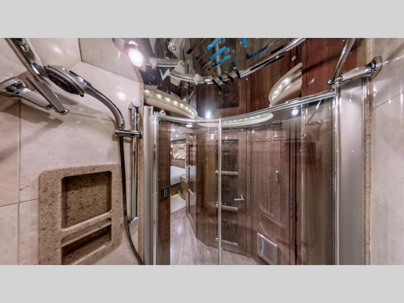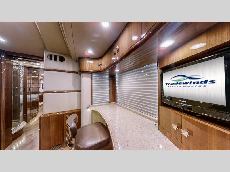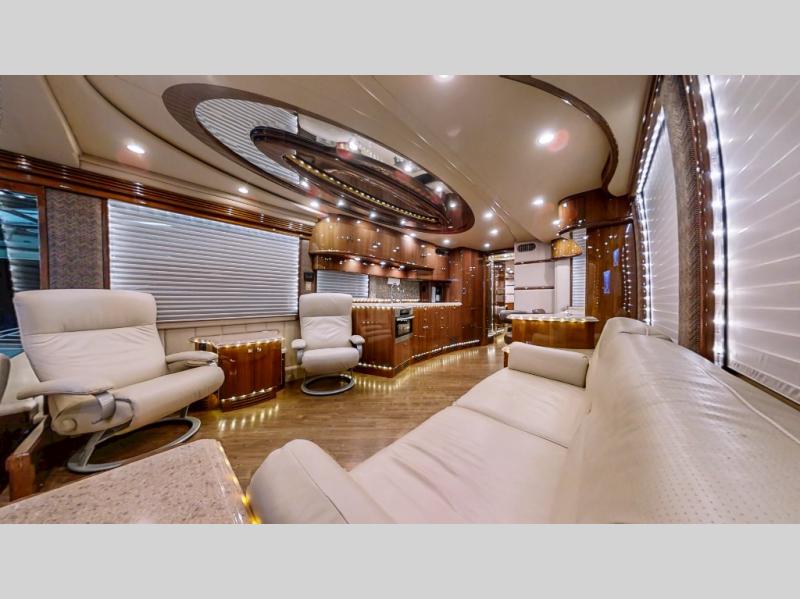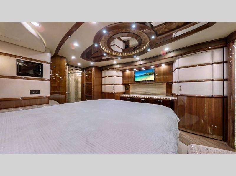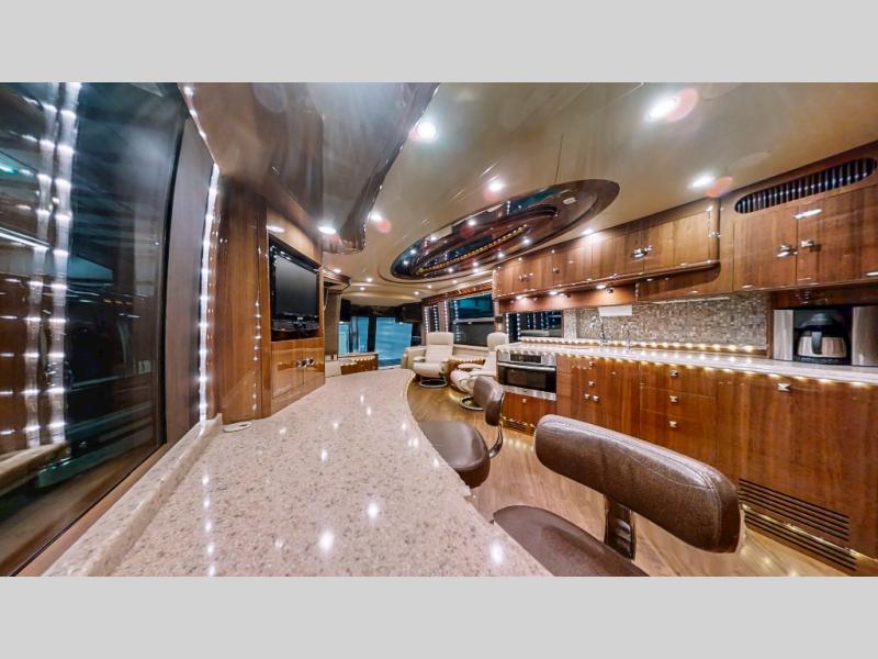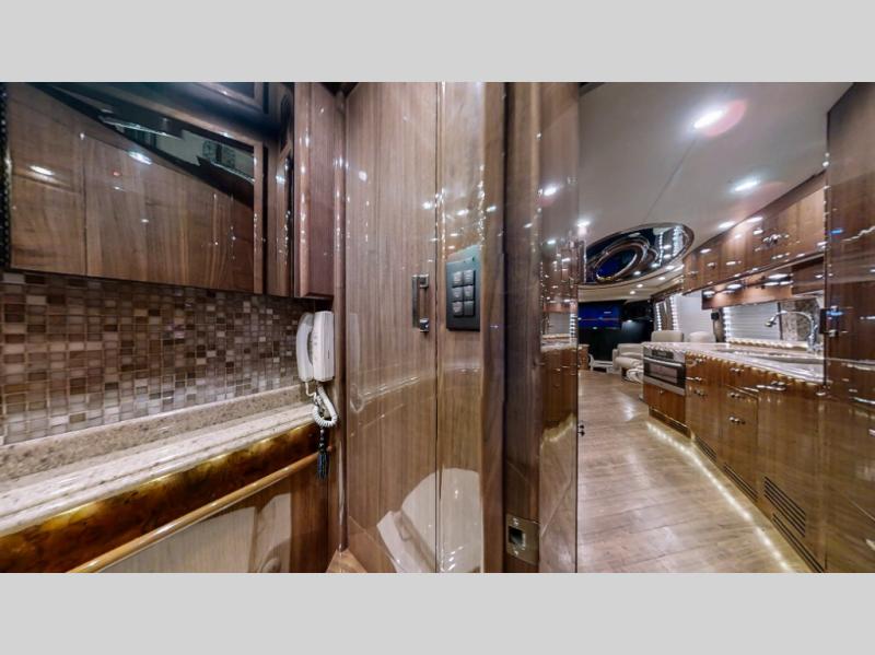 • Alcoa aluminum rims • Cruise control • Allison hydraulic transmission retarder • All disc brakes w/ ABS & electronic stability program • Independent suspension system • Front & drive axle sway bars • Integrated pneumatic level-low leveling system • Liftable tag axle • Fully multiplex electrical system • 12-volt exterior lighting • 24-volt main system • Millennium installed house alternator • High intensity headlights • Fog lights • Ramco remote chrome heated rearview mirrors • Central electrical door locking system • Remote keyless locking (entrance door) • Remote keyless locking (compartment doors) • Trailer hitch package (20,000 lb.) • Back up sound alarm • Xenon headlamps • Lightweight granite countertops • Air operated pocket doors • Marine grade electrical wire • Octaplex control system • Ipad touch screen controllers linked to Octaplex operating system • Full time internet Open Road Mo wi-fi network connection • Ceiling accent rope lighting throughout using LED technology • Multi-zone heating system • Interior & exterior LED lighting • Motorized Hunter Douglas cell shades • Front & rear custom spoilers • Bose surround sound • Aiphone intercom w/ built-in monitor to view entry door w/ zoom & pan feature • Master lighting switch on the rear nightstand & front • Electric blackout shades • Automatic interior LED cabinet lights • Central vacuum • In-motion Tracstar satellite dish with two receivers • HD Winegard dish • Four full length roof mounted awnings w/ wind sensors slideout / window / patio • Six LED curb lights • Four high powered air horns in nose for wind noise reduction • Liberty one-touch leveling system • Chrome plated heated side mirrors • Li Ion house batteries • Four Outback inverters Three Mastervolt LiIon batts (2020)• Glendenning electric reel for shoreline cord • Cruise Air A/C units • Generator auto-start feature • Smart Wheel • Pneumatic tilt & telescope steering wheel • Air Ride cooled, heated & massaging driver’s seat • 28” wide co-pilot seat w/ recline, footrest, electric six way power base, massage, heating, map storage & drink holder • Electric privacy shades • Pioneer AM/FM/DVD/GPS/MP3 • Mapping system • Adjustable monitor at passenger seat • Color LCD back-up monitor • CB radio • Slide step well cover • Concealed drop-down flatscreen TV at front of coach • LVT flooring in salon • Jack Knife sofa • Euro recliner Breakfast with bar stools • Flatscreen TV on concealed electric lift at galley bar • Stainless sink • Built-in coffee pot • Two burner cooktop • Microwave/convection oven • Drawer dishwasher • Half bath w/ vanity/sink & toilet in private water closet • LVT flooring in hallway leading to stateroom • Stack washer/dryer • King Bed