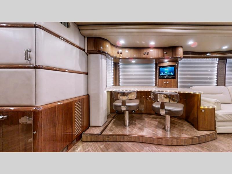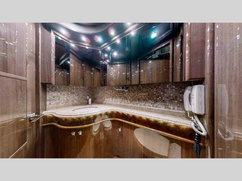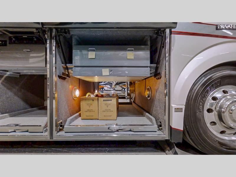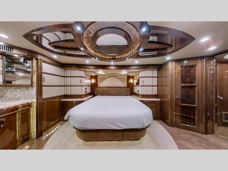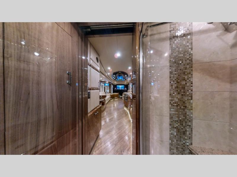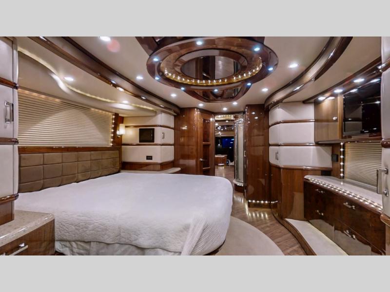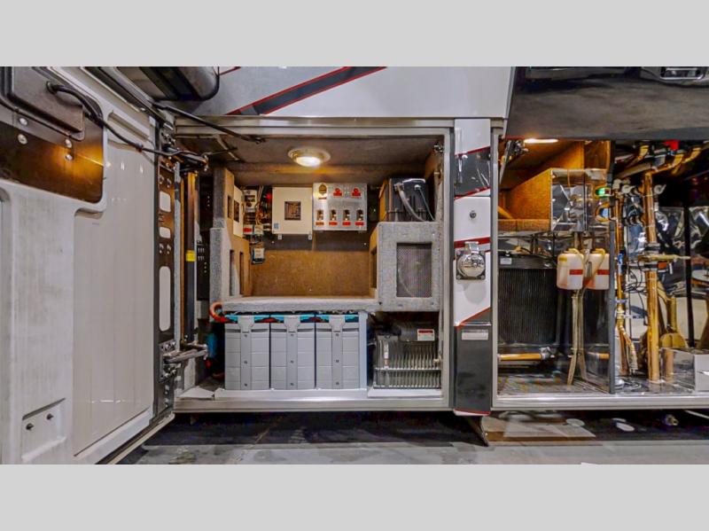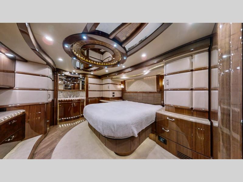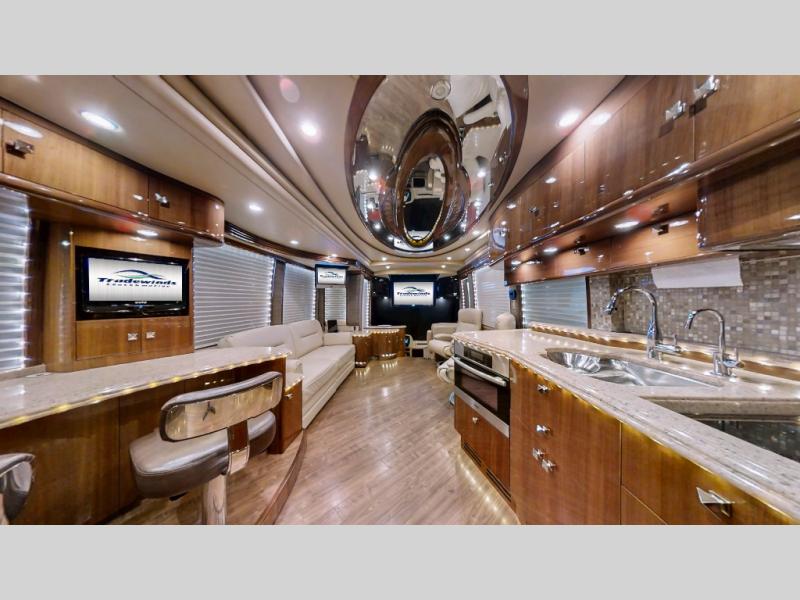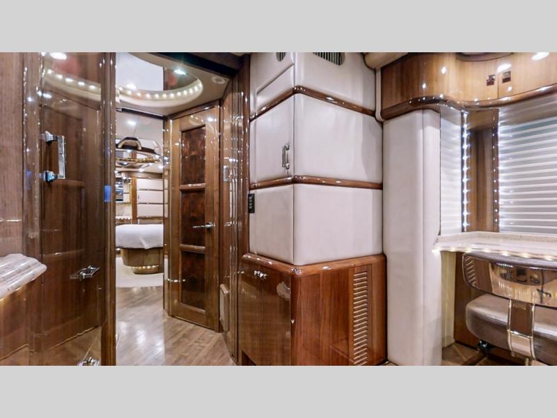 • Alcoa aluminum rims • Cruise control • Allison hydraulic transmission retarder • All disc brakes w/ ABS & electronic stability program • Independent suspension system • Front & drive axle sway bars • Integrated pneumatic level-low leveling system • Liftable tag axle • Fully multiplex electrical system • 12-volt exterior lighting • 24-volt main system • Millennium installed house alternator • High intensity headlights • Fog lights • Ramco remote chrome heated rearview mirrors • Central electrical door locking system • Remote keyless locking (entrance door) • Remote keyless locking (compartment doors) • Trailer hitch package (20,000 lb.) • Back up sound alarm • Xenon headlamps • Lightweight granite countertops • Air operated pocket doors • Marine grade electrical wire • Octaplex control system • Ipad touch screen controllers linked to Octaplex operating system • Full time internet Open Road Mo wi-fi network connection • Ceiling accent rope lighting throughout using LED technology • Multi-zone heating system • Interior & exterior LED lighting • Motorized Hunter Douglas cell shades • Front & rear custom spoilers • Bose surround sound • Aiphone intercom w/ built-in monitor to view entry door w/ zoom & pan feature • Master lighting switch on the rear nightstand & front • Electric blackout shades • Automatic interior LED cabinet lights • Central vacuum • In-motion Tracstar satellite dish with two receivers • HD Winegard dish • Four full length roof mounted awnings w/ wind sensors slideout / window / patio • Six LED curb lights • Four high powered air horns in nose for wind noise reduction • Liberty one-touch leveling system • Chrome plated heated side mirrors • Li Ion house batteries • Four Outback inverters Three Mastervolt LiIon batts (2020)• Glendenning electric reel for shoreline cord • Cruise Air A/C units • Generator auto-start feature • Smart Wheel • Pneumatic tilt & telescope steering wheel • Air Ride cooled, heated & massaging driver’s seat • 28” wide co-pilot seat w/ recline, footrest, electric six way power base, massage, heating, map storage & drink holder • Electric privacy shades • Pioneer AM/FM/DVD/GPS/MP3 • Mapping system • Adjustable monitor at passenger seat • Color LCD back-up monitor • CB radio • Slide step well cover • Concealed drop-down flatscreen TV at front of coach • LVT flooring in salon • Jack Knife sofa • Euro recliner Breakfast with bar stools • Flatscreen TV on concealed electric lift at galley bar • Stainless sink • Built-in coffee pot • Two burner cooktop • Microwave/convection oven • Drawer dishwasher • Half bath w/ vanity/sink & toilet in private water closet • LVT flooring in hallway leading to stateroom • Stack washer/dryer • King Bed