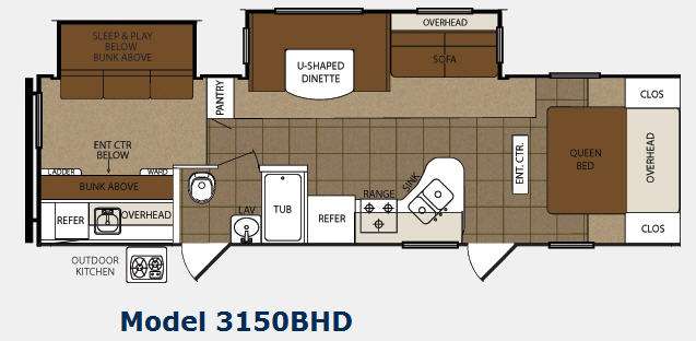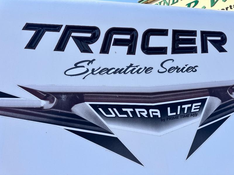 Double Slide Tracer Executive Series Rear Sleep & Play/Bunk Above Slideout, Ent. Center Below, Bunk Above, Ladder, Wardrobe, Outdoor Kitchen w/Refrigerator, Sink, 2-Burner Range, Pantry, U-Shaped Dinette/Sofa Slideout, Toilet, Lav., Tub, Refrigerator, 3-Burner Range, Double Kitchen Sink, Entertainment Center, Front Queen Bed, Double Shirt Closet, Overhead Cabinets Throughout & Much More!