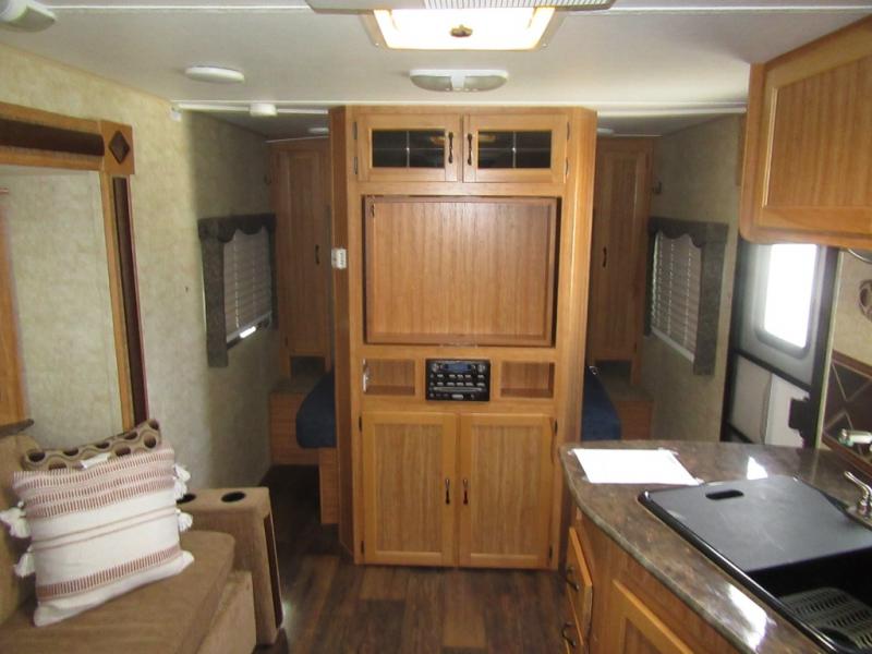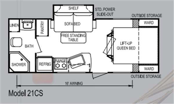 SOFA SLIDE OUT!Single Slide Koala Travel Trailer, Rear Shower, Toilet, Linen, Lav., Pantry, Sofa Bed w/Shelf Slide, Free Standing Table, Lift-Up Queen Bed, Double Wardrobes, Kitchen Sink, Double Burner Range, Refrigerator, Overhead Cabinets Throughout, Outside Storage & Much More. Available Options May Include: 16' Awning.