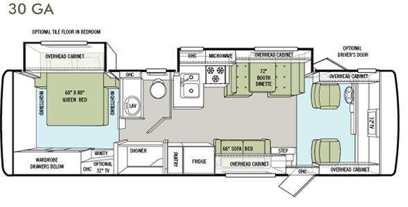Tiffin Allegro Class A Coach w/Rear Queen Bed Slide w/Overhead Cabinet, Wardrobe w/Drawers Below & Vanity w/Overhead Storage, Private Toilet Area w/Sink, Shower, Pantry, Refrig., Sofa Bed w/Overhead Storage, 32" TV Above Cab Area, Side Overhead Storage in Cab Area Both Sides, Booth Dinette/3 Burner Range & Dbl. Kitchen Sink Slide and More! Available Options May Include: 32" Bedroom TV, Driver's Door, Workhorse Chassis w/8.1L V8 Engine.