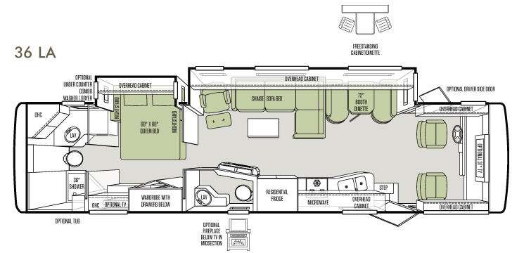 Allegro Class A Motorhome w/Rear Full Bath Including: Shower, Toilet & Vanity w/Sink, Overhead Cabinet, Queen Bed Slideout w/Nightstands, Wardrobe w/Drawers Below, Lounge Chair/Chaise Sofa Bed w/Coffee Table & Booth Dinette Slideout, Dbl. Kitchen Sink, 3 Burner Range, Residential Refrigerator, 1/2 Bath, LCD TV in Living Area, Overhead Storage Throughout and Much More! Available Options May Include: Combo Wash/Dryer, Fireplace Below TV, Freestanding Dinette, Driver Side Door, TV Above Cab Area.