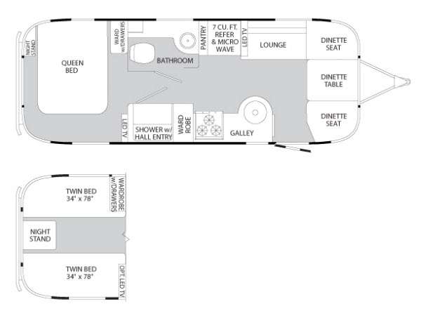 Flying Cloud Travel Trailer, Rear Queen Bed w/Nightstand, Wardrobe w/Drawers, Toilet, Lav., Pantry, Refrigerator, Microwave, LED TV, Lounge, Dinette w/Table, Galley Sink, 3-Burner Range, Wardrobe, Shower w/Hall Entry, LED TV, Overhead Cabinets Throughout & Much More. Available Options May Include: Rear Twin Beds IPO Queen Bed.