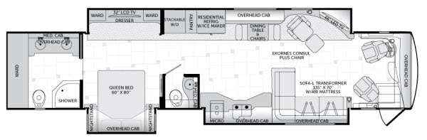 Triple Slide American Eagle Motor Home, Rear Bath w/Shower, Toilet, Wardrobe, Dbl. Lavs, Med. Cab., Dbl. Wards./Dresser/32" LCD TV/Stackable W/D/Pantry/Refrigerator/Table & Chairs/Lounge Chair/46" LCD TV Slide, L-Sofa/Dbl. Kitchen Sink/2-Burner Range/Microwave Slide, Half Bath, Dbl. Nightstands/Queen Bed Slide Overhead Cabinets Throughout & Much More. Available Options May Include: Queen/King Bed w/Memory Foam, Queen/King Bed w/Air, Dishwasher, W/D Ready, W/D Combo, 14 cu. ft. Refrigerator.