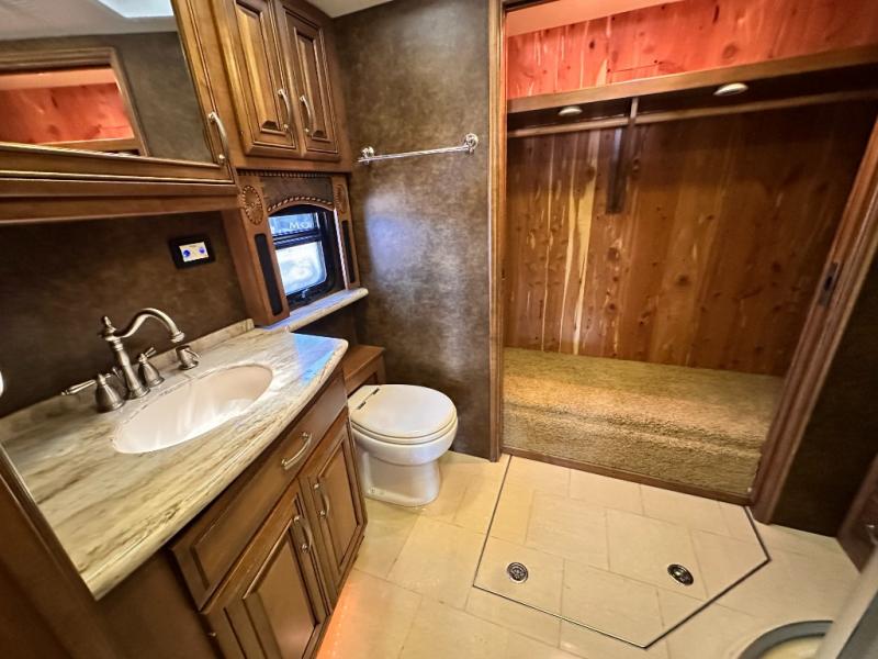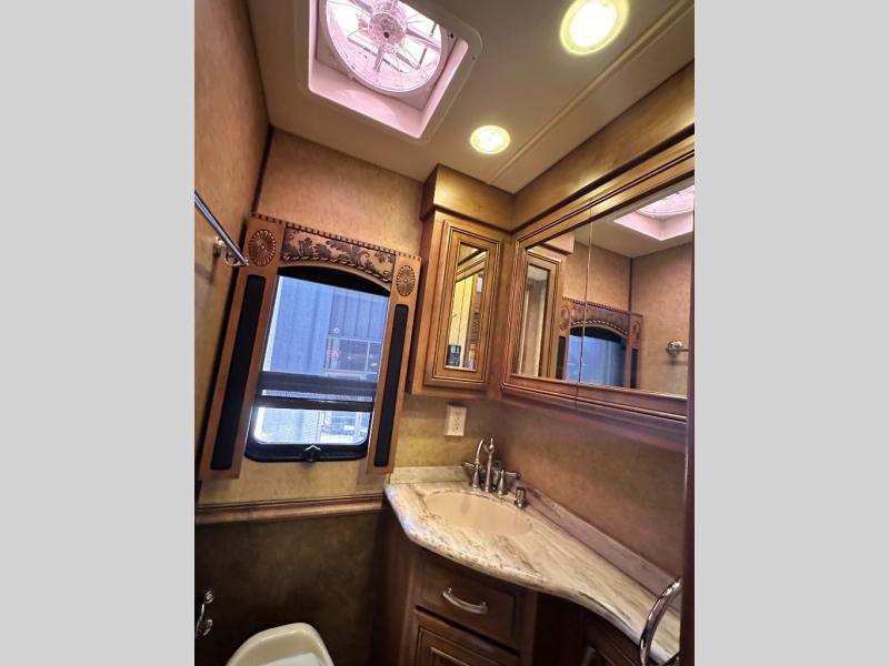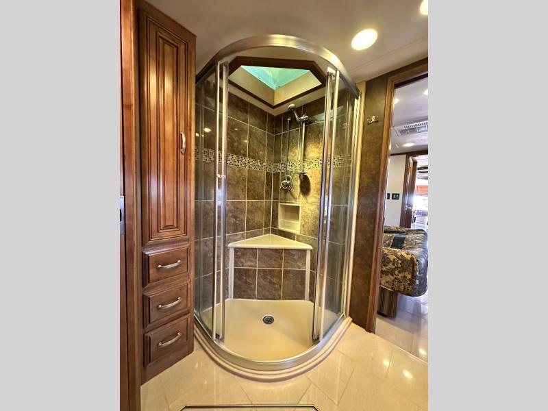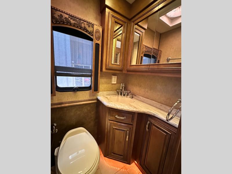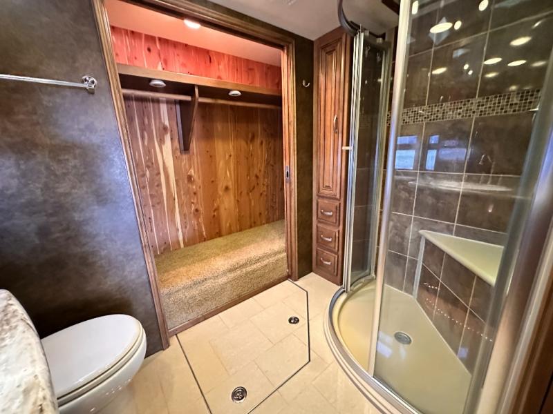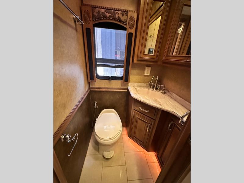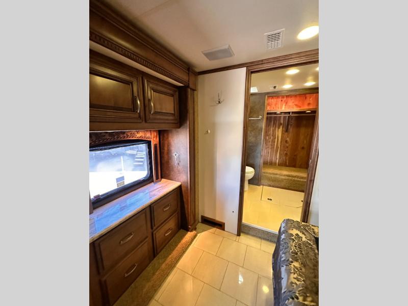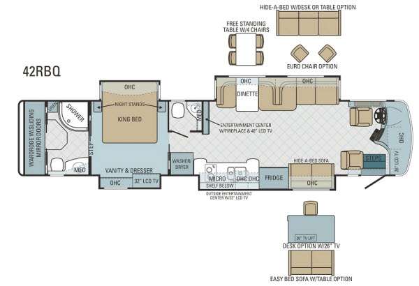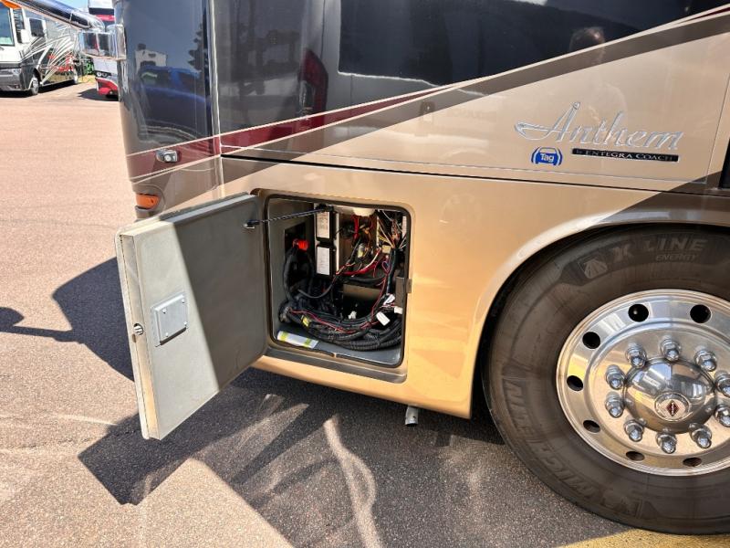 Quad Slide Anthem Motor Home, Rear Wardrobe w/Mirror Doors, Linen, Shower, Lav., Med. Cab., Toilet, Vanity & Dresser w/32" LCD TV Slide, King Bed w/Nightstands Slide, Half Bath, Ent. Center w/Fireplace & 40" LCD TV, Dinette/Sofa Slide, Hide-a-Bed Sofa/Refrig./Dbl. Kitchen Sink/2-Burner Range/Micro. Slide, W/D, Overhead Cabinets Throughout & Much More. Available Options May Include: Free Standing Table w/4 Chairs, Hide-a-Bed Desk or Table, Desk w/26" TV, Easy Bed Sofa w/Table.