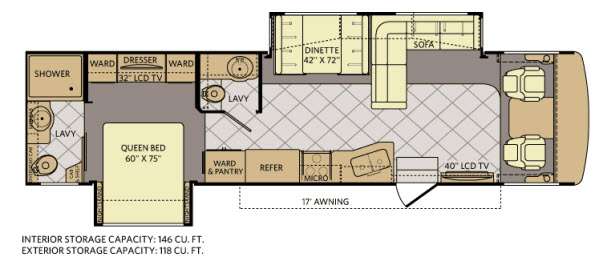 Double Slide Bounder Motor Home, Rear Bath w/Shower, Lav., Toilet, Queen Bed/Nightstands Slide, Ward./Pantry, Refrigerator, 3-Burner Range, Microwave, Dbl. Kitchen Sink, 40" LCD TV, L-Sofa/Dinette Slide, Half Bath, Ward., Dresser, 32" LCD TV, Ward., Overhead Cabinets Throughout & Much More. Available Options May Include: Ext. Entertainment Center, 3-Burner Range w/Oven, Washer/Dryer, Fireplace, Sofa Sleeper w/Air Mattress and Footrest, Facing Dinette.