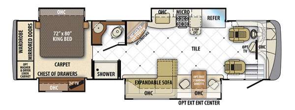 Quad Slide Berkshire Motor Home, Rear King Bed Slide, Wardrobe w/Mirrored Doors, Chest of Drawers/24" TV Slide, Shower, Expandable Sofa Slide, Refrigerator/C'Top Extension/Microwave/3-Burner Range/Single Galley Sink Slide, 40" LCD TV, Private Toilet Area w/Lav., Overhead Cabinets Throughout & Much More. Available Options May Include: Washer/Dryer, Free-Standing Dinette, Fireplace, Ext. Entertainment Center. Cummins ISB-XT 360HP Engine Available.