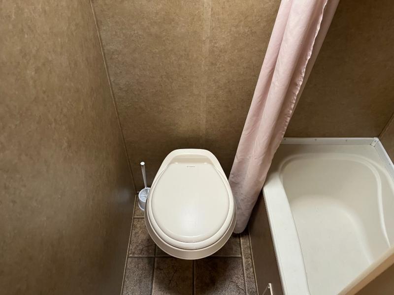 Step inside and you’ll be surprised by how efficiently the space is designed. The open layout provides comfortable sleeping accommodations, including bunk beds that are ideal for kids or guests, along with a dinette that easily converts into additional sleeping space. Every inch is thoughtfully used to create a cozy and functional living area.