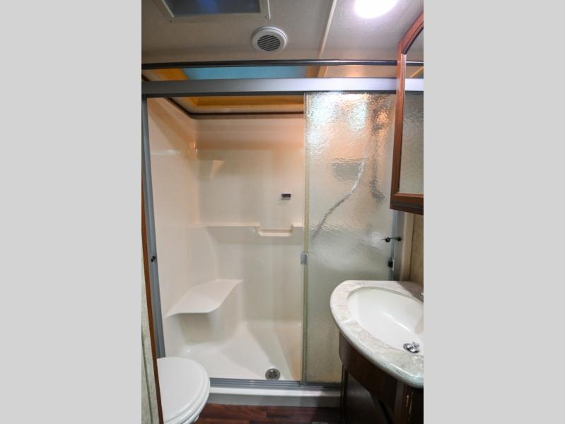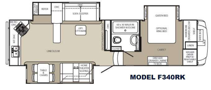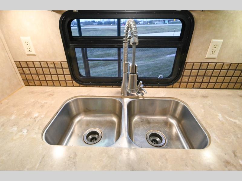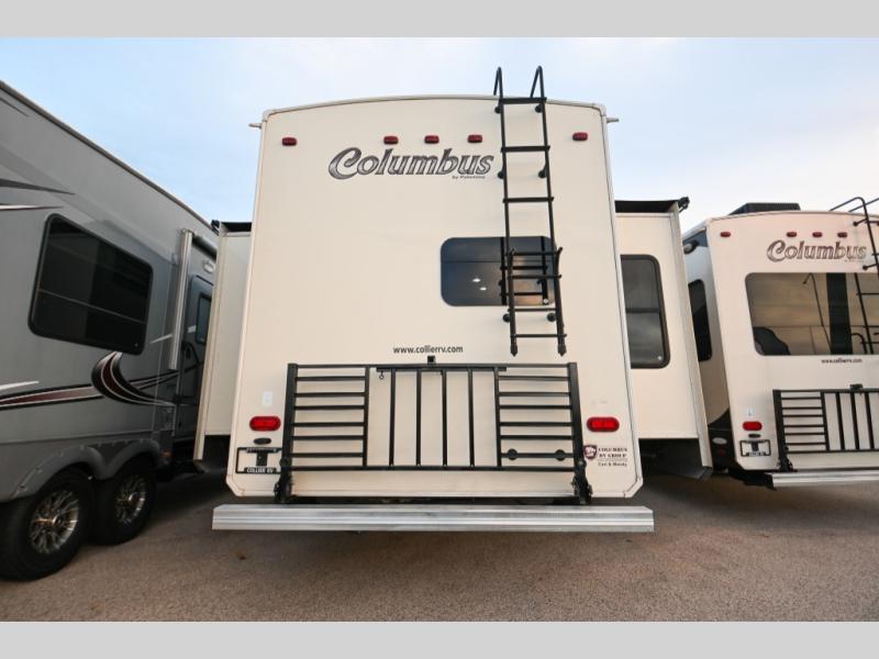 Palomino Columbus Fifth Wheel w/Rear Kitchen Including: 3 Burner Range, Counter w/Overhead & Dbl. Sink, Slideout Dinette & Home Theater Seating w/Overhead Cabinet, Roll-Out Pantry/Refrig., Sofa Sleeper Slide, Ent. Center w/Overhead Storage, Step Up to Side Aisle Bath w/Walk-In Shower w/Dome, Toilet, Sink & Med. Cabinet, Coat Closet in Hall, Front Queen Bed Slide, Wardrobe w/Drawers Below & Shelf Above, Linen Cabinet, Washer/Dryer Prep w/Removable Shelf, Dresser w/TV Box Above and Much More!