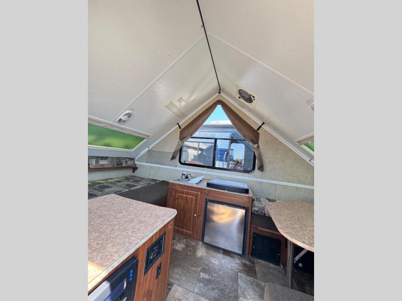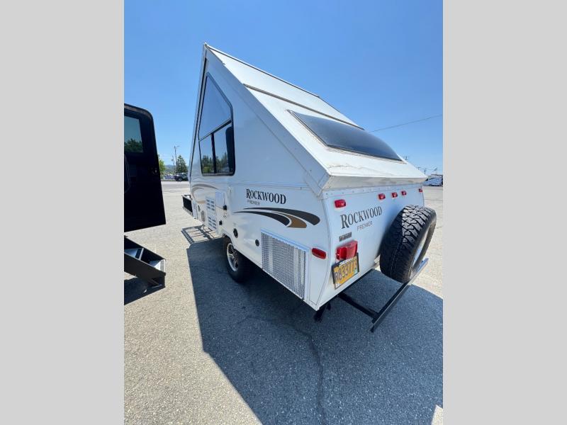 Rockwood Hard Side Folding Pop-Up Camper, Rear Sofa/Bed, Shelf, Cool Cat, Removable Table, Single Galley Sink, 3-Burner Range, Refrigerator, Furnace, Dinette, Conv. W/H, Micro. Cab., Removable Table, RVQUE Gas Grill, Awning, Front Deck Storage w/Expanded Metal Decking & Much More.