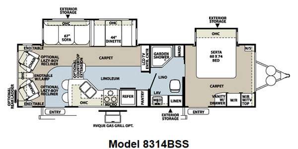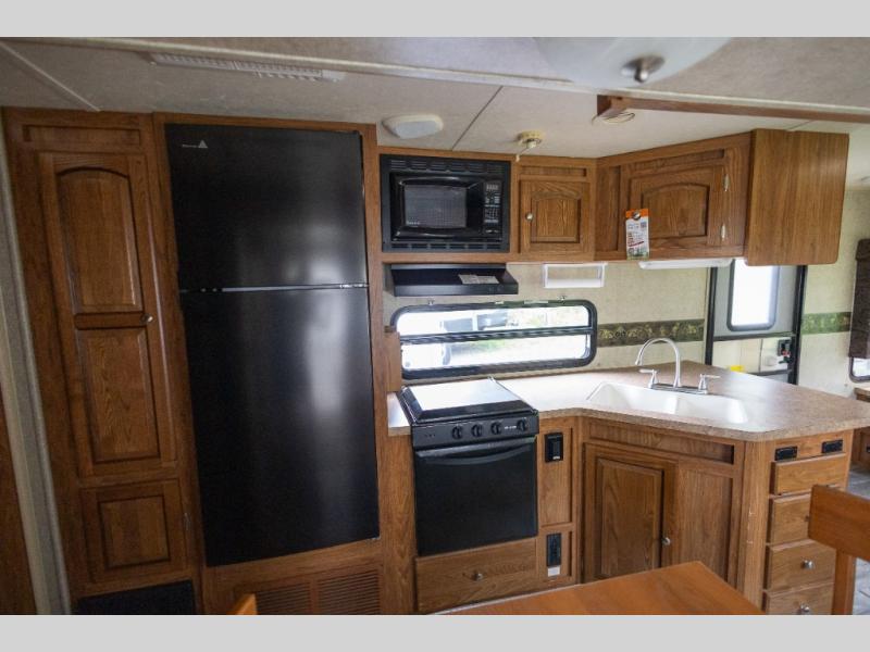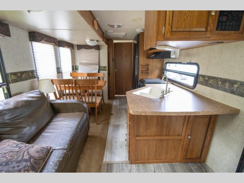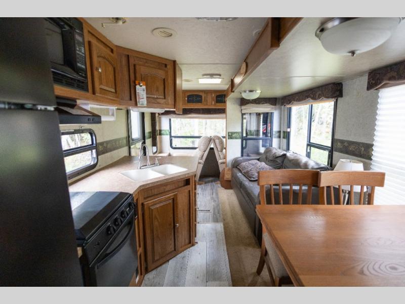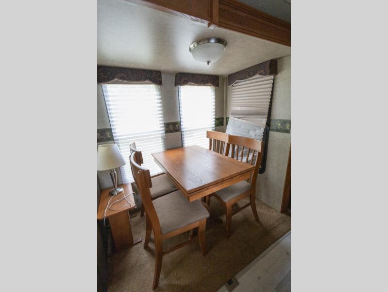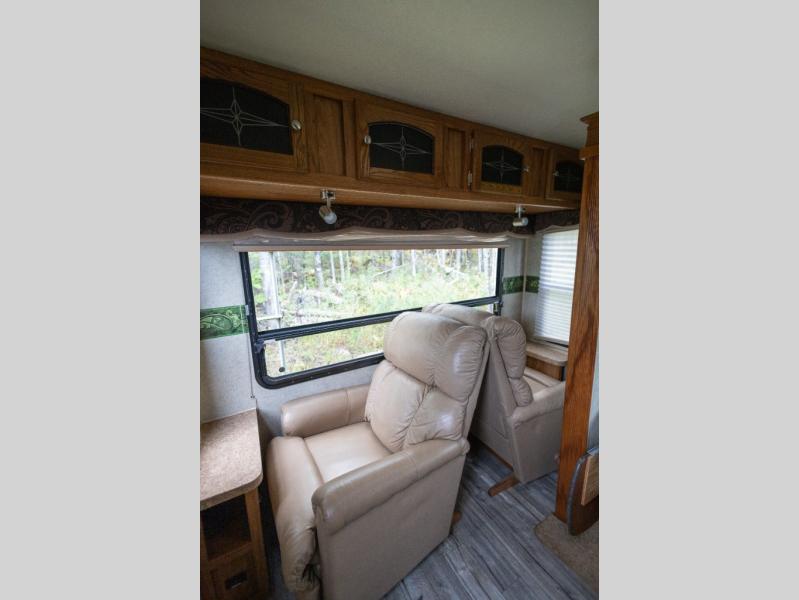 Double Slide Rockwood Ultra Lite Travel Travel w/Rear Lounge Chairs, Moveable Table, Two End Tables, Sofa/Booth Dinette Slide w/Overhead Cab., Two Stools, Dbl. Kitchen Sink, 3 Burner Range w/Micro., Refrig., Pantry, LCD TV, Ent. Cntr., Garden Shower, Ward., Lav. w/Med. Cab., Linen, Toilet, Front Queen Bed Slide, Nightstand, Vanity w/Drawer, Ward., 2nd Ward. w/TV Above, Awning, Exterior Storage Front & Rear and More. Available Options May Include: Rear Ladder, Gas Grill, C'Top Ext.