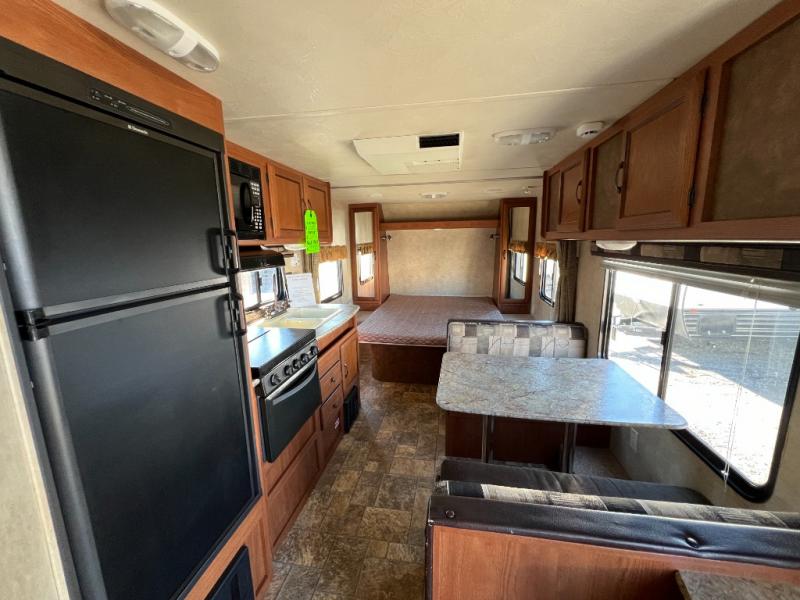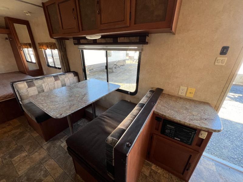 Step into the 2013 Salem Cruise Lite 221RBXL and you’re greeted by a warm, easygoing layout that feels inviting from the moment you walk in. The front living and sleeping area blends comfort and simplicity, offering a cozy bed, a relaxed seating space, and large windows that bring in plenty of natural light. The kitchen is arranged for practical, everyday use with the counter space and storage you need to prepare meals without feeling cramped. It’s a layout that makes settling in feel natural, whether you’re on a quick weekend trip or an extended getaway.