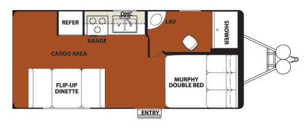 Work and Play Toy Hauler Travel Trailer, Rear Flip Up Dinette, Refrigerator, 3-Burner Range, Double Kitchen Sink, Lav., Toilet, Shower, Murphy Bed, Sofa & Much More.