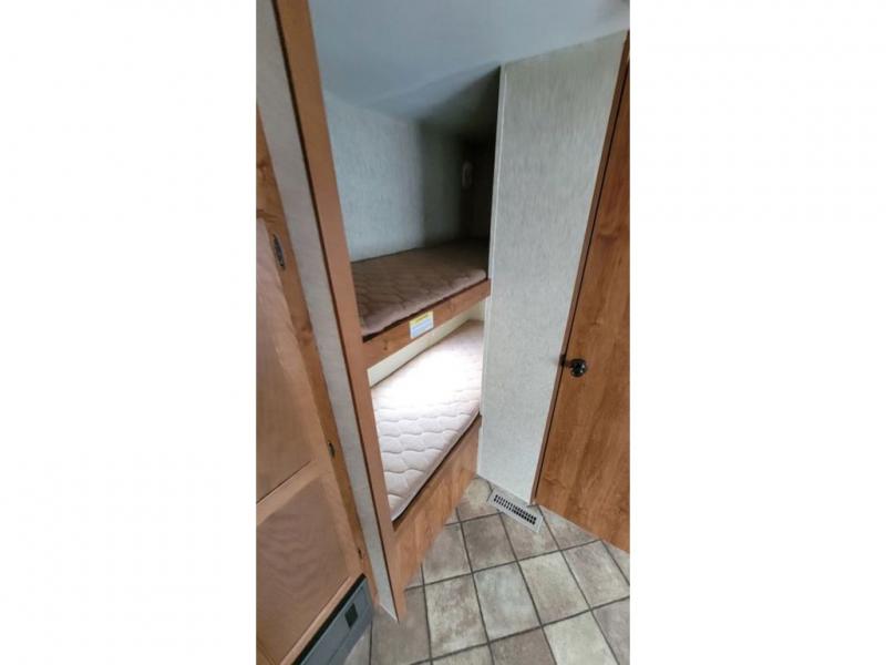 Heartland Trail Runner SLE Bunkhouse Travel Trailer w/Rear Corner Bunk Beds, Rear Corner Bath Including: Tub/Shower, Toilet, Sink & Linen Cabinet, Slideout Booth Dinette & Sofa w/Overhead Above Sofa, Ent. Center, Pantry, Refrigerator, 3 Burner Range, Dbl. Kitchen Sink & Overhead Storage, Front Queen Bed w/Storage Both Sides & Overhead Cabinet and More!