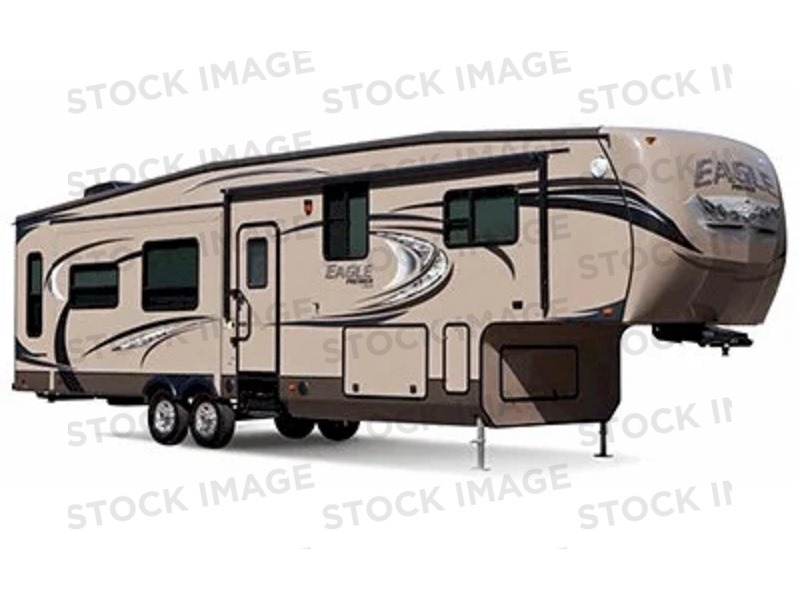Triple Slide Eagle Premier Fifth Wheel, Rear 2-Lounge Chairs w/End Table, Dbl. Cabinets/Entertainment Center/Hutch/Micro./3-Burner Range/Refrigerator/Pantry Slide, Dbl. Kitchen Sink, Cabinet, Hide-a-Bed/Free-Standing Table & Chairs Slide, Step Up To Bed/Bath, Toilet, Shower, Lav., Wardrobe/Queen Bed Slide, Walk-In Closet, Storage, W/D Prep, Chest, Overhead Cabinets Throughout & Much More. Available Options May Include: King Bed, 12 cu. ft. Refrigerator.