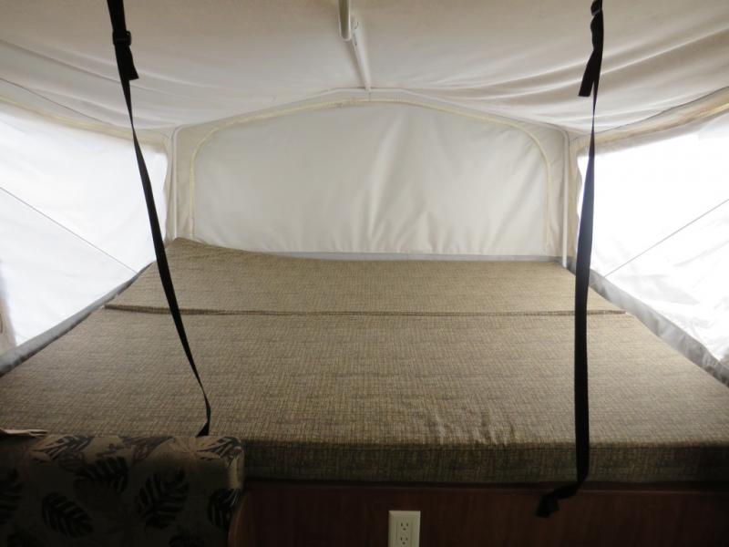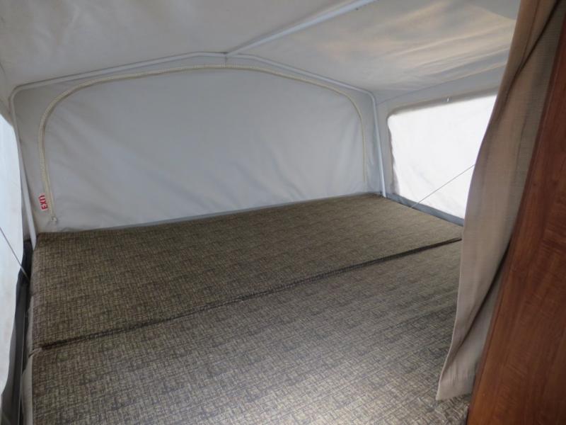 Expandable Jayco Jay Feather Ultra Lite Travel Trailer, Rear & Front Tent Beds, Bath w/Corner Shower, Toilet, Lav., Overhead Cab., Refrig./TV Shelf, Booth Dinette, Overhead Cab., Single Galley Sink, 3 Burner Range, Microwave, J-Steel Sofa w/Overhead Cab., 10' Awning & More.