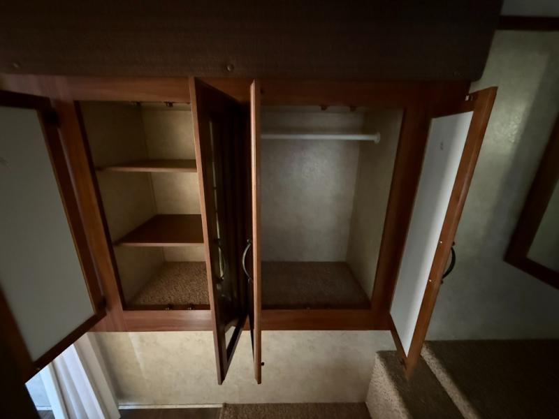 Keystone Cougar XLite w/Rear Living Area Including 2 Swivel Chairs w/Overhead Cabinet & End Table Between, Desk/LCD TV Slideout w/Overhead Storage, Sofa & U-Dinette Slide, Dbl. Kitchen Sink w/Counter Top Extension, 3 Burner Range, Refrigerator, Pantry, Side Aisle Bath w/Neo-Angle Shower, Toilet & Sink, Dbl. Bath Entry, Front Queen Bed w/Wardrobes Both Sides of Bed, Slideout Wardrobe, Laundry Chute, Front Pass-Thru Storage and Much More!