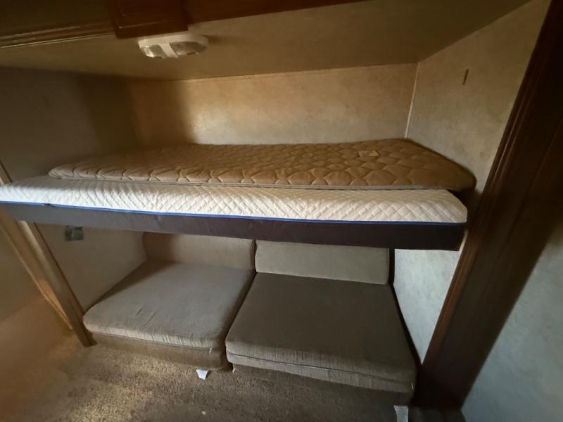 "As Is Where is" - call for detailsPremier Bunkhouse Travel Trailer w/Rear Bunk Bed Slide w/Trundle Bed Below, 3rd Bunk Above Exterior Camp Kitchen w/Swivel Out Cook Center, Refrig. & Swivel TV, Tub/Shower, Toilet & Sink, Private Bath Entry, Pantry/Wardrobe, Booth Dinette/Visionary Sofa Slide w/Overhead Cabinet Above Sofa, Swivel LCD TV in Living Area, Pantry, Refrig., 3 Burner Range & Kitchen Sink w/Overhead Cabinet, Front Queen Bed w/Wardrobes, Pass-Thru Storage and Laundry Chute and Much More!