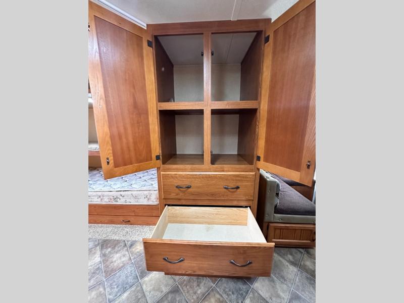 Double Slide Sprinter Bunkhouse w/Slideout Rear Bunks w/Trundle Below, Large Wardrobe, Bunk w/Storage, Outdoor and More Exterior Kitchen w/Flip Out Stove, Bath w/Private Entry, Tub/Shower, Lav. & Toilet, U-Shaped Dinette & Air Bed Sofa Slideout, Dbl. Kitchen Sink, Pantry, Refrig., 3 Burner Range, Swivel 32" LCD HDTV for Living Area & Bedroom Viewing, Front Queen Bed w/Shirt Closets Above Nightstands, Pass-Thru Storage & More. Available Options May Include: Air Bed Sofa Slideout w/Bunk Above.