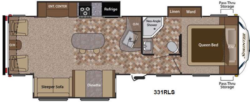 Keystone Sprinter Travel Trailer w/Rear Living Area Including: 2 Recliners w/End Table Between & Overhead Storage, Slideout Ent. Center/3 Burner Range & Refrigerator, Kitchen Island Bar w/Stools, Slideout Sleeper Sofa & Booth Dinette, Kitchen Sink, Overhead Storage, Side Aisle Bath w/Neo-Angle Shower, Toilet & Sink, Wardrobe Slideout, Queen Bed w/Wardrobe & Storage Plus Much More!