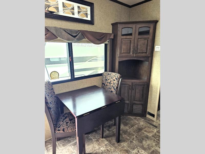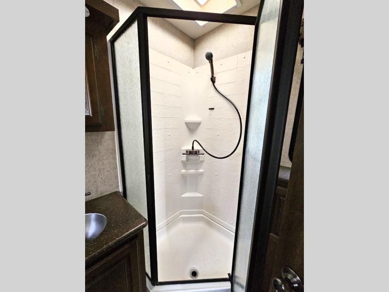 Quad Slide StoneRidge Fifth Wheel, Rear Queen Bed Slide, Wardrobe/Closet/TV Slide, W/D Closet, Lav., Shower, Toilet, Dbl. Kitchen Sink/3-Burner Range/Pantry/Refrigerator Slide, Hutch, Table & Chairs, Step Up To Living Area, Lounge Chair, Air Bed Sofa Slide, Ottoman, Entertainment Center, Sofa w/Incliner Slide, Overhead Cabinets Throughout, 17' Awning & Much More. Available Options May Include: King Bed.