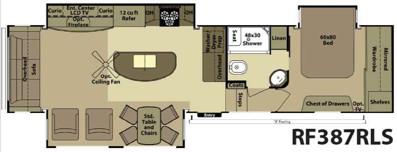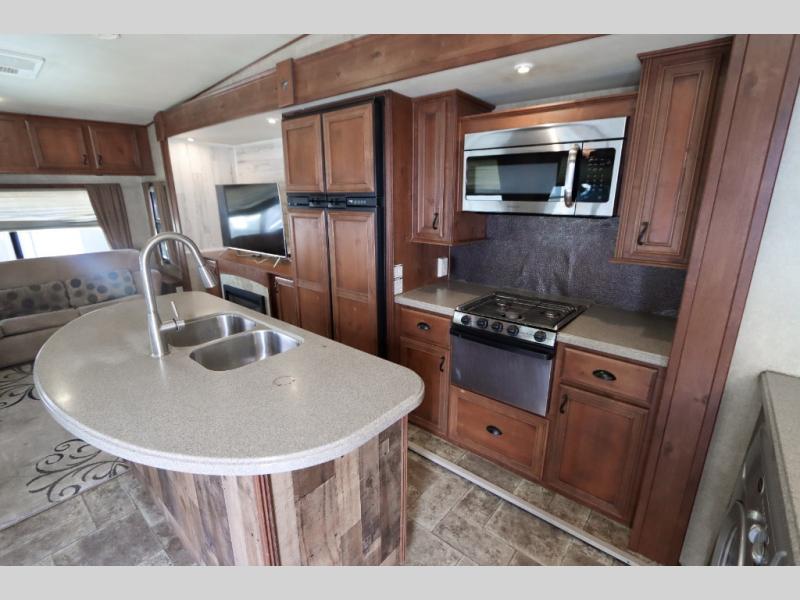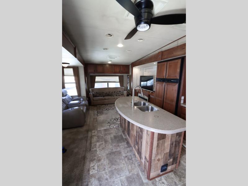 The 387RLS offers an ideal blend of livability and towability. The rear-living setup creates an inviting, home-like feel, and the high ceilings and wide body design give this fifth wheel exceptional openness. Whether you’re relaxing indoors, entertaining friends, or enjoying the road, this Open Range delivers comfort at every turn.