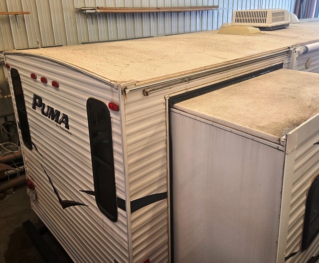 Double Slide Puma Travel Trailer w/Rear LCD TV Ent. Center, Sofa Slideout, 2nd Sofa & Booth Dinette Slide w/Exterior Storage, Refrigerator, Dbl. Kitchen Sink, Skylight, 3 Burner Range & Pantry, Coat Hooks, Long Linen Cabinet, Side Aisle Bath w/Linen Cabinet, Toilet, Sink & Shower, Front Queen Bed w/Pocket Door, TV Shelf, Front Queen Bed w/Shirt Closets & Night Stands, Front Pass-Thru Storage & More!