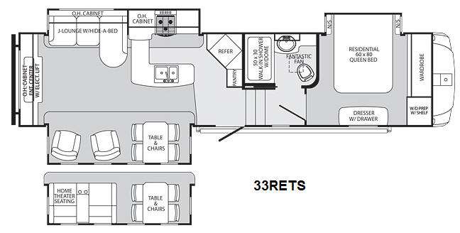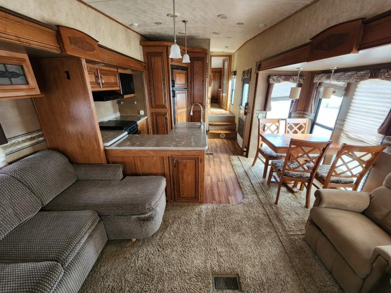 Palomino Sabre Fifth Wheel w/Rear Ent. Center w/Electric Lift TV, Overhead Cabinet, Slideout Area w/2 Lounge Chairs & Dinette Table w/Chairs, Slideout L-Sofa w/Overhead/L-Counter w/Dbl. Kitchen Sink & 3 Burner Range, Refrigerator & Pantry, Step Up to Side Aisle Bath w/Toilet, Sink, Fantastic Fan & Tub/Shower w/Dome, Front Queen Bed Slide w/Nightstands, Dresser, Wardrobe, Washer/Dryer Prep and Much More! Available Options May Include: Home Theater Seating Slide IPO Chairs.