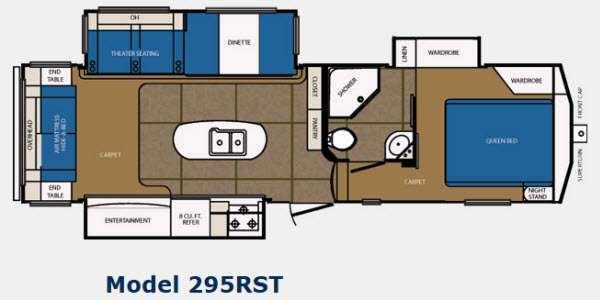 Triple Slide Crusader Fifth Wheel, Rear Hide-a-Bed Sofa, Dbl. End Tables, Theater Seating/Dinette Slide, Closet, Pantry, Kitchen Island w/Dbl. Kitchen Sink, Entertainment Center/Refrigerator/3-Burner Range Slide, Step Up To Bed/Bath, Toilet, Lav., Shower, Linen/Wardrobe Slide, Wardrobe, Queen Bed, Nightstand, Overhead Cabinets Throughout & Much More.
