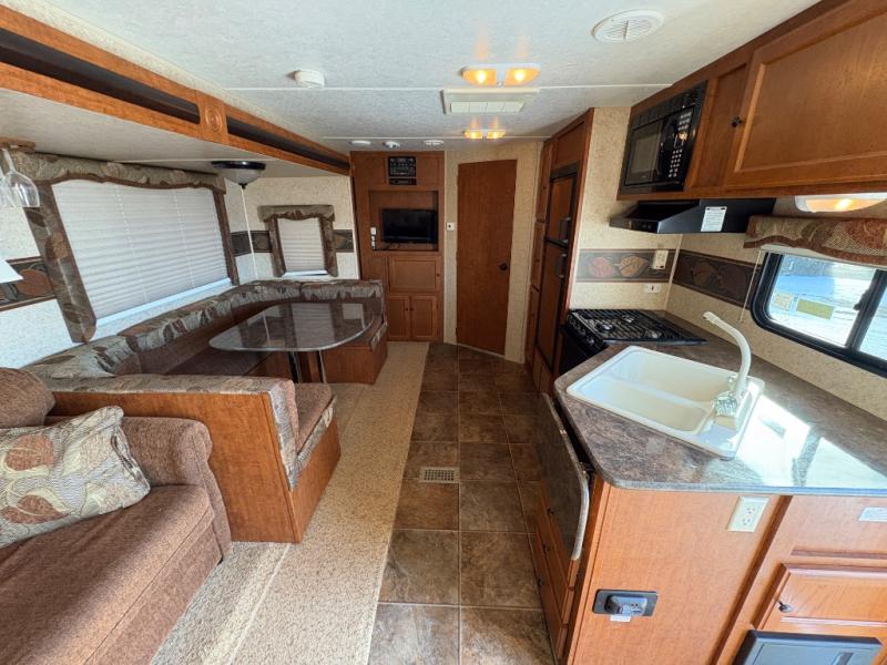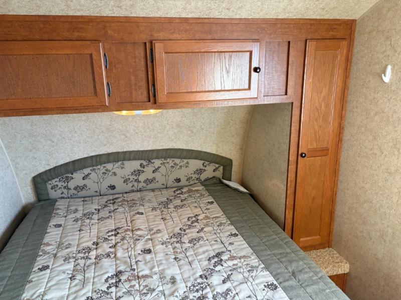 Single Slide Joey Select Travel Trailer, Rear Living Area with 2-Chairs, End Table, Sofa Hide-a-Bed/Dinette Slide, TV Cab., Linen, Toilet, Front Queen Bed, Dbl. Wardrobes, Shower, Lav., Pantry, Refrigerator, 2-Burner Range, Double Kitchen Sink, Overhead Cabinets Throughout, Outside Storage, 14' Awning & Much More.