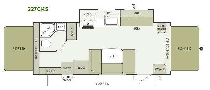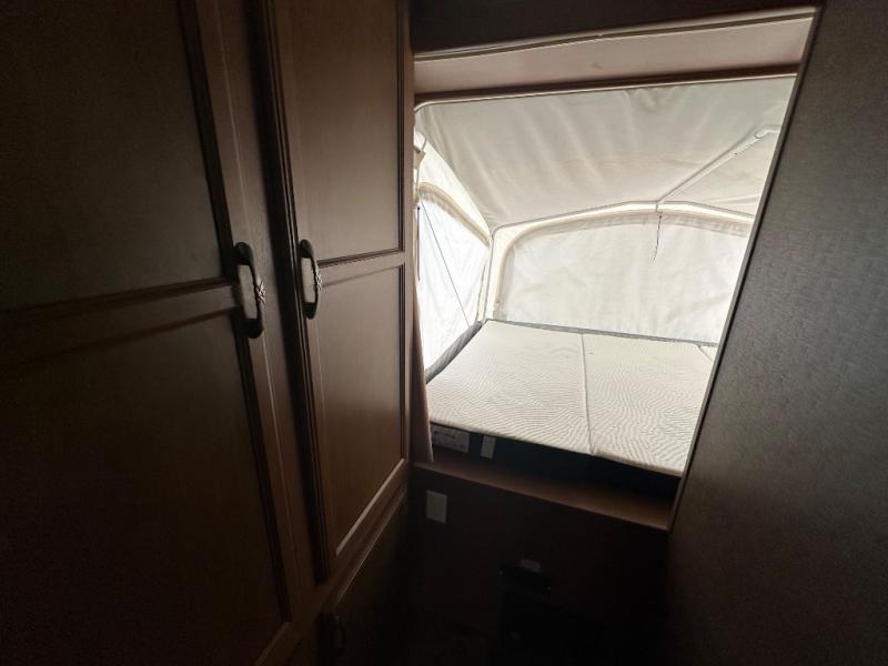 Travel Star Expandable w/Front & Rear Tent End Bed, Overhead Shelf, Rear Corner Bath Including: Angle Shower, Toilet & Lav., 2 Pantries, Wardrobe, Refrig., U-Dinette, Slideout 3 Burner Range w/Microwave/Kitchen Sink & Sofa w/Overhead Storage, Nightstand & TV/Wardrobe in Front, Exterior Storage and Much More!