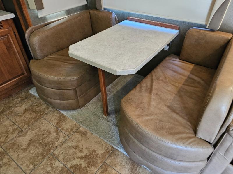 Lounge chair, booth dinette, and sofa bed provide plenty of seating